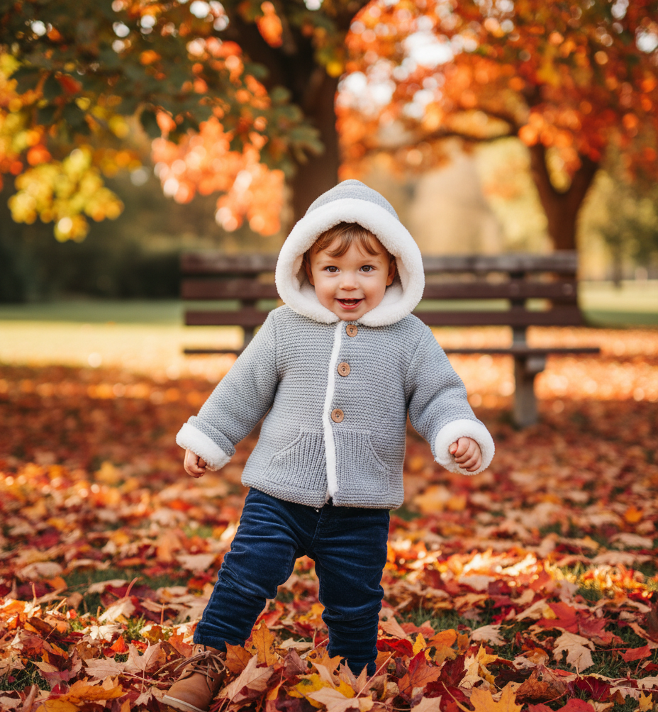 El diseño es ideal para mantener a un bebé o niño pequeño protegido del frío con un toque clásico y dulce.🌿