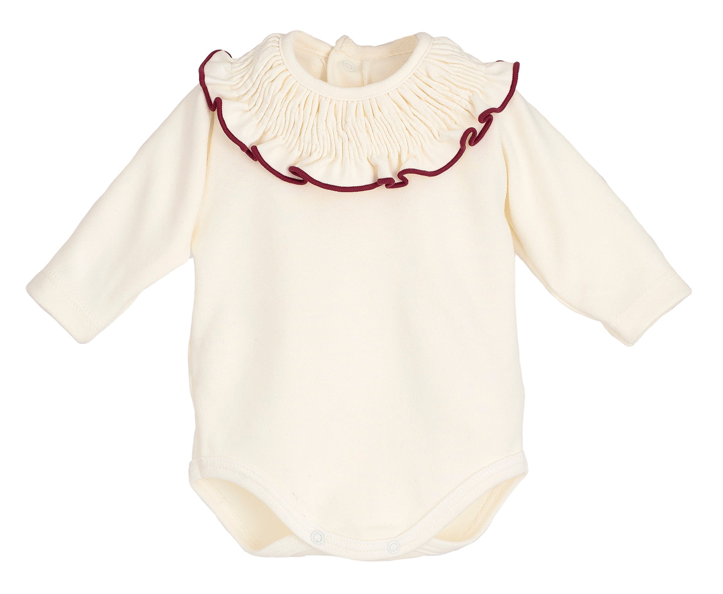 💙 Body de algodón crema y volante con remate azul en Cuello.🩵