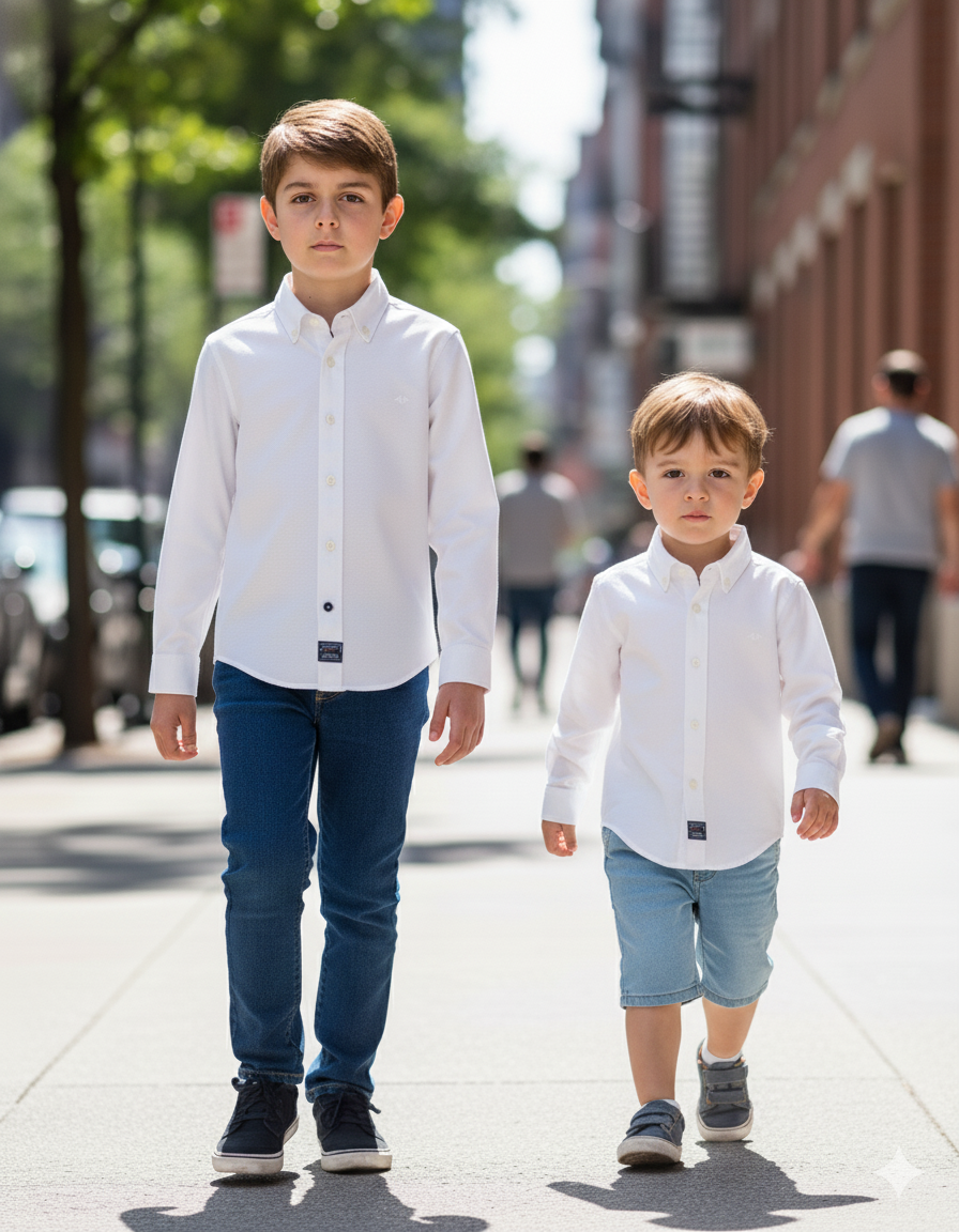 💚Camisa basica blanca niño 4 años a 14 años. Modelo confeccionado en tejido de casisa, disponible en colore blanco. Una prenda práctica y versátil, perfecta para acompañar su día a día con estilo.