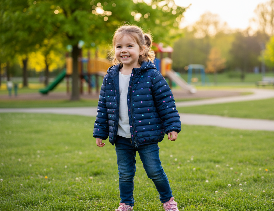 Este es un chaquetón acolchado o puffer jacket diseñado para niña, ideal para el entretiempo o días frescos.