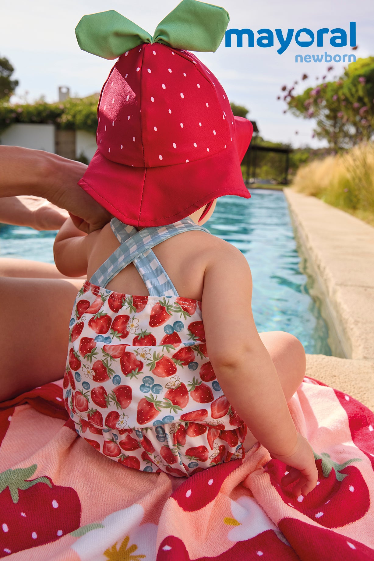 Conjunto de camiseta de fresitas , braguita y gorro .