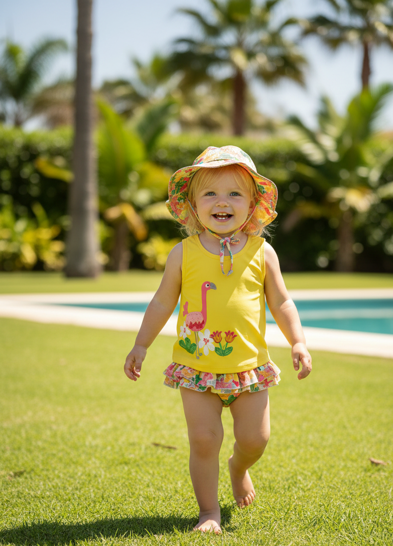 Corte: Tiene un diseño abullonado con elásticos suaves en las perneras para crear ese volumen tierno típico de la moda infantil clásica.