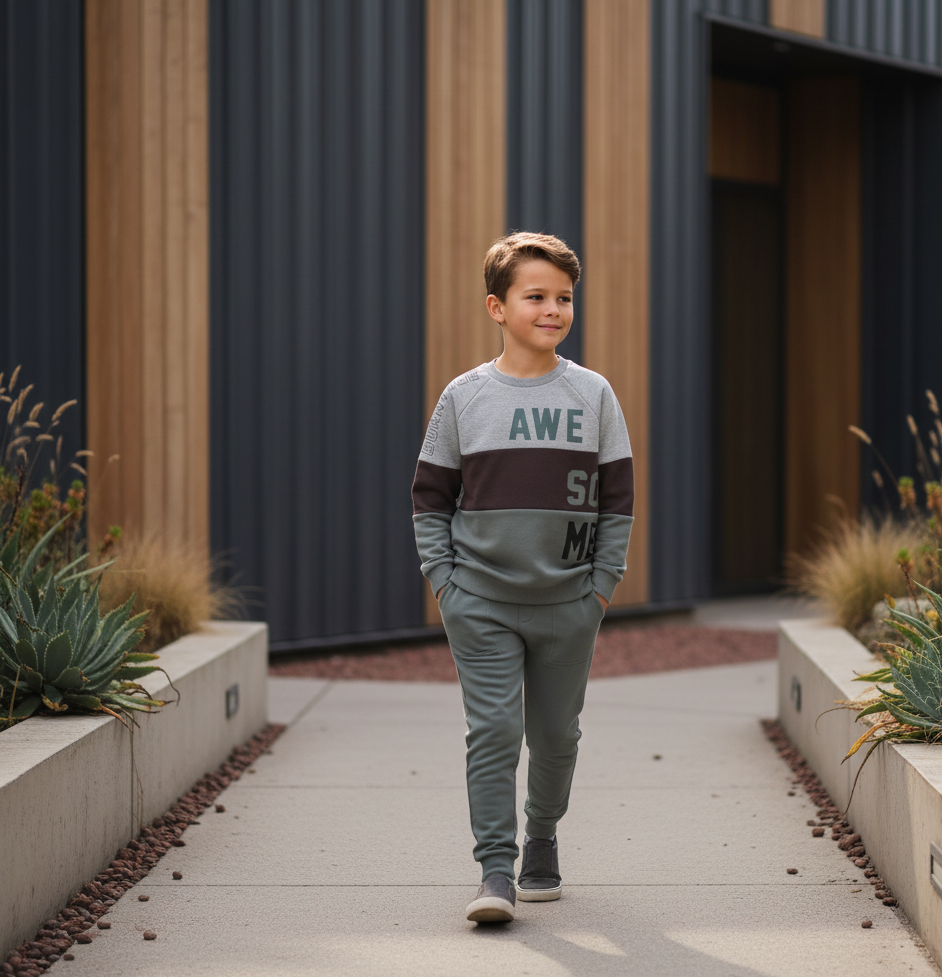 Conjunto chándal de sudaderatricolor con estampado, pantalón gris con bolsillo y cinta en la cintura de ajuste