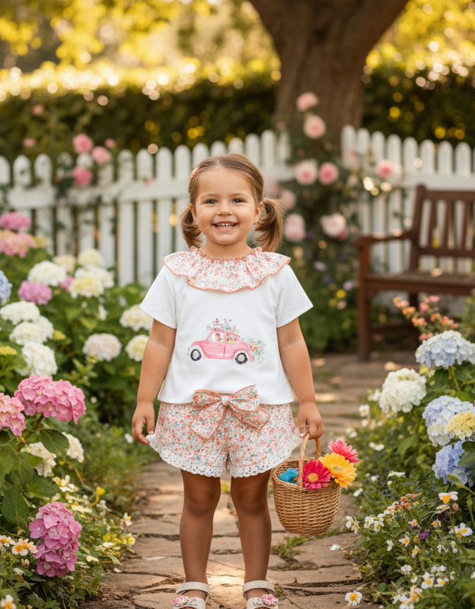 🐰 Conjunto camiseta y short de Flores y filo de encaja de Valentina