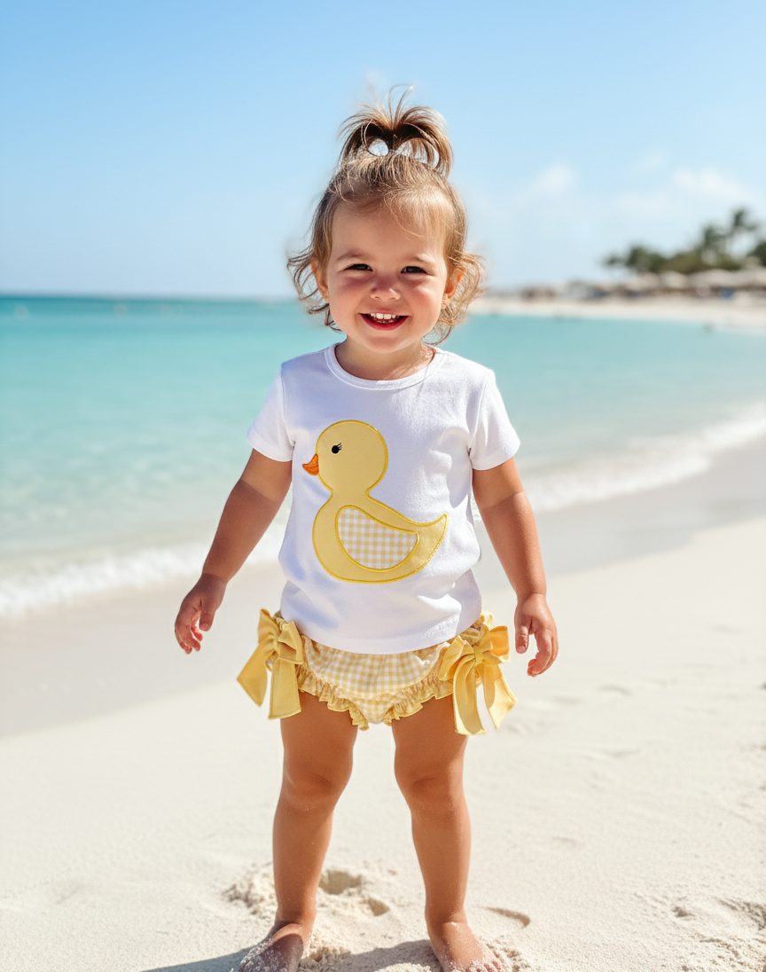 Conjunto camiseta algodón y braguita bañador con volante y lacito 💚