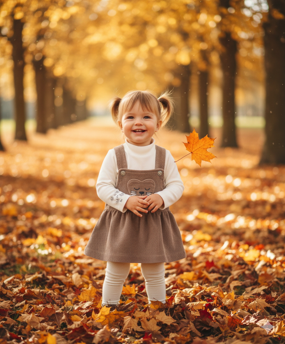 Es un look clásico y confortable, perfecto para ocasiones casuales o para salir, manteniendo un estilo tierno y atemporal.