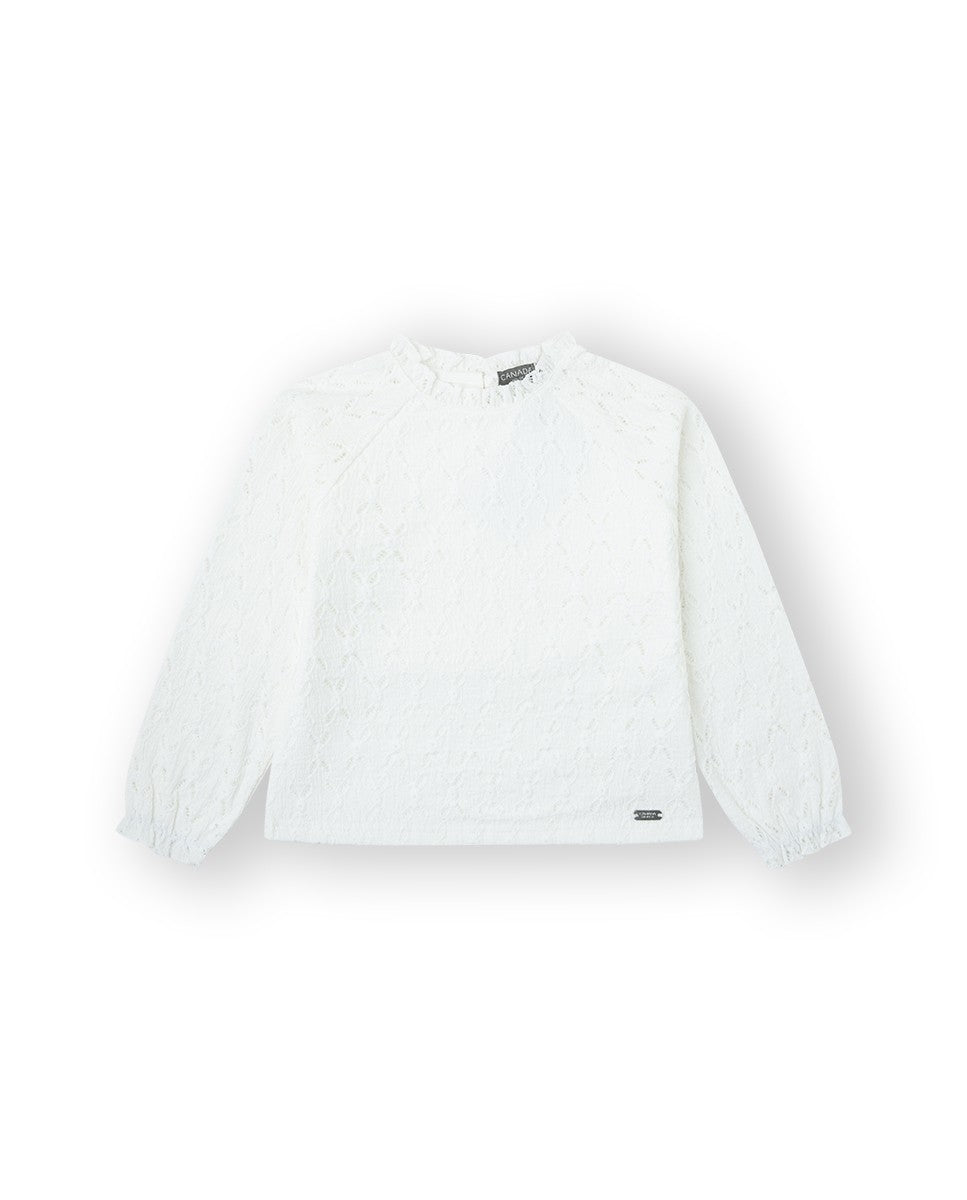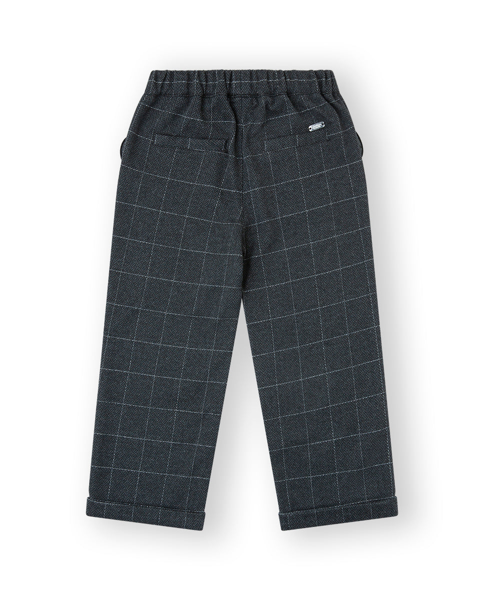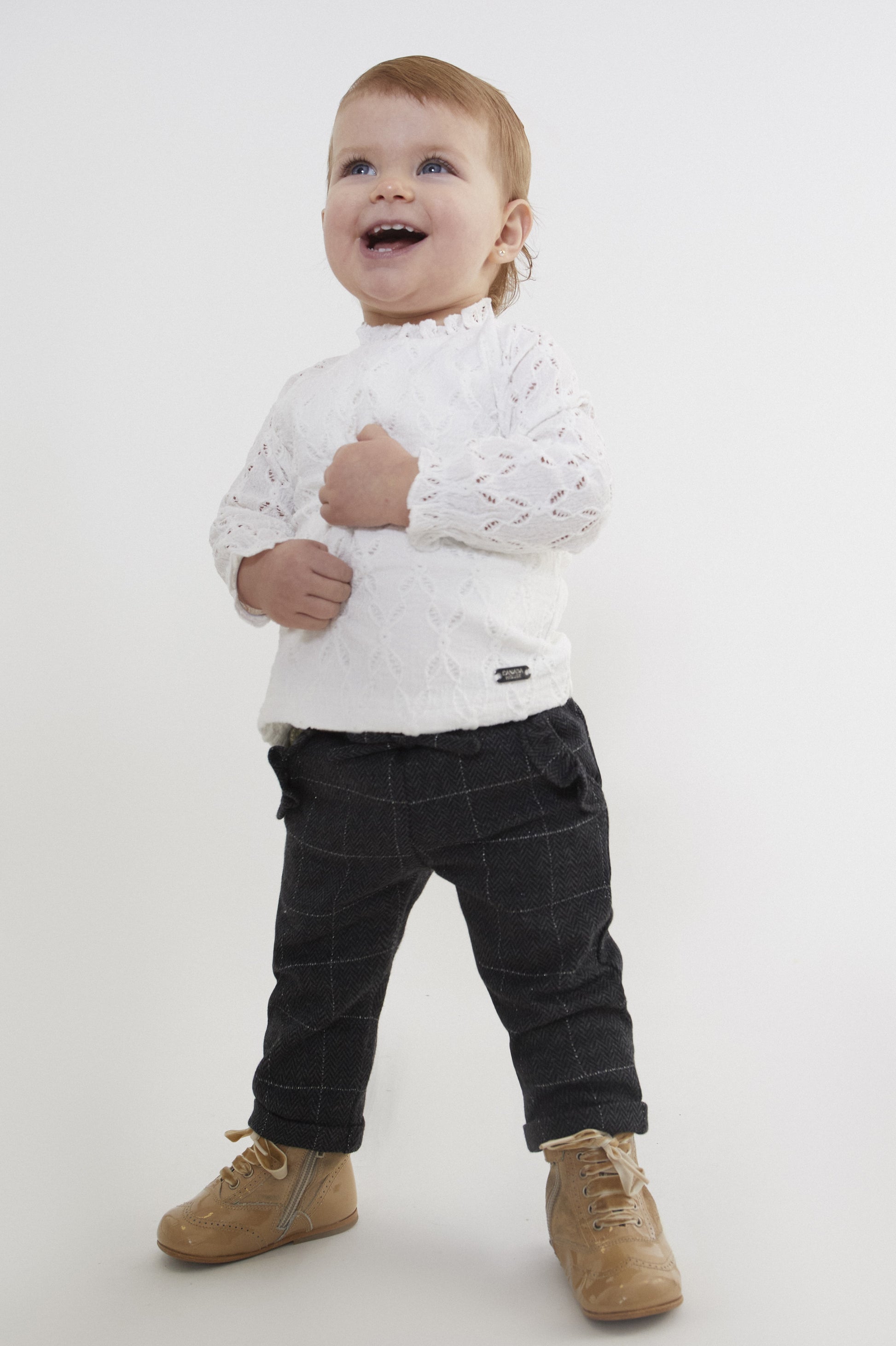 💚Para niñas de 12 meses a 12 años, Conjunto de pantalón gris jacquard con cuadros en plata y camisa de encaje crema que le da un elegante toque vintage💚