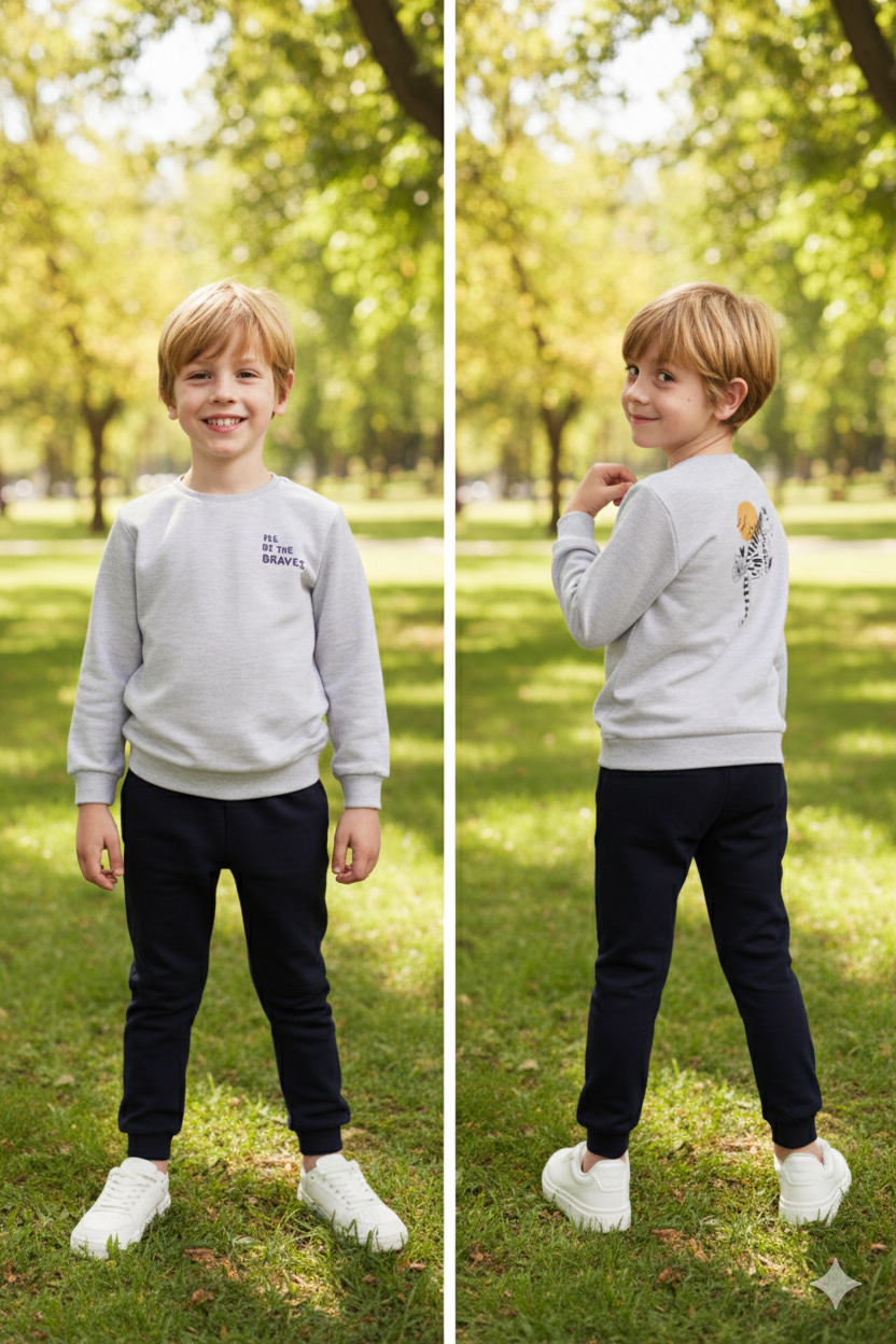 💚Conjunto de dos piezas, sudadera y pantalón para niño de 3 meses a 6 años. Sudadera de felpa perchada con bloques de color en maíz, gris vigoré y azul noche, con cuello redondo y el texto “Best Explorer” bordado en el pecho. El pantalón a juego es liso en azul noche, con cinturilla elástica y puños ajustados para mayor comodidad. Un look moderno y lleno de estilo para acompañarlo en cada nueva aventura..💚