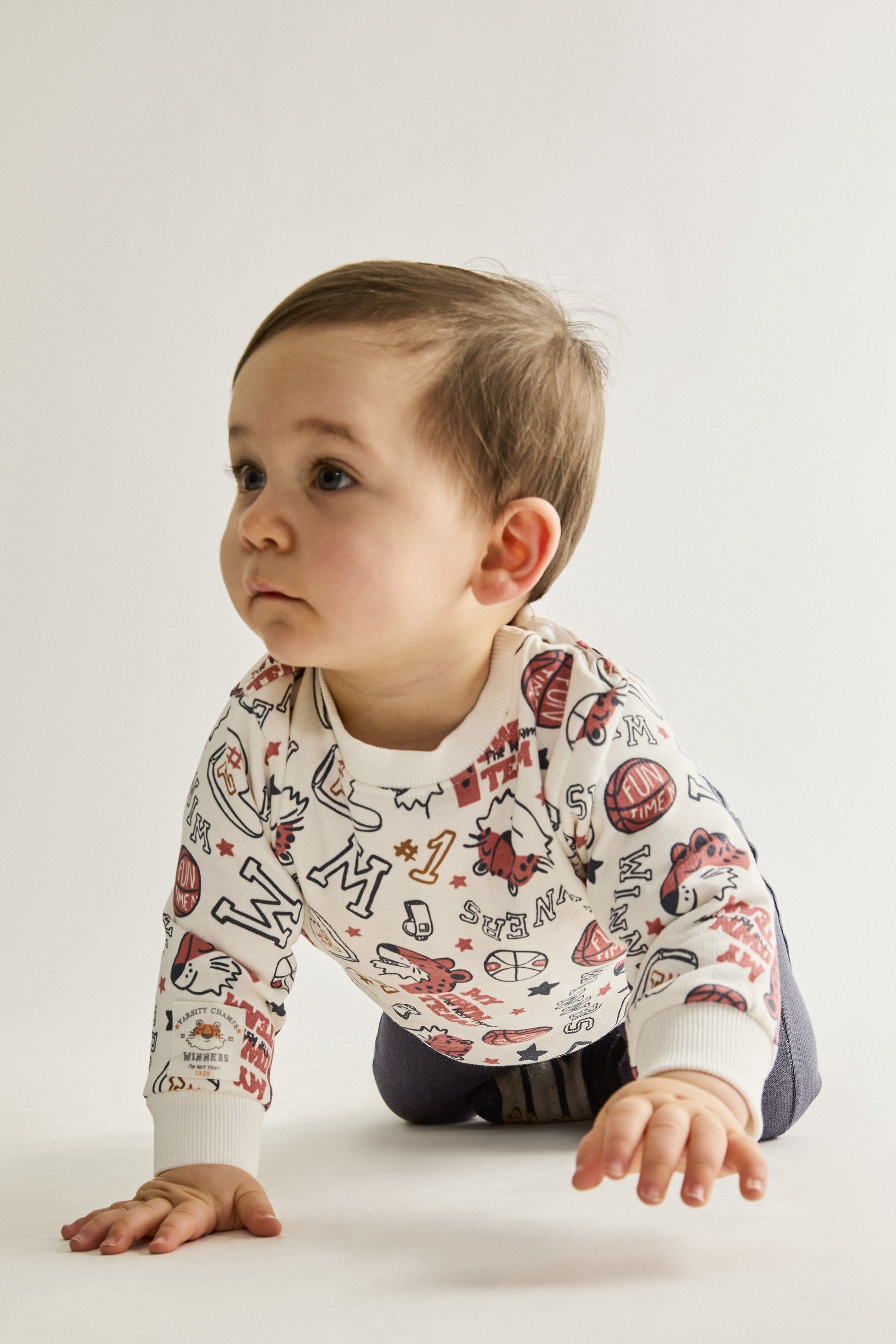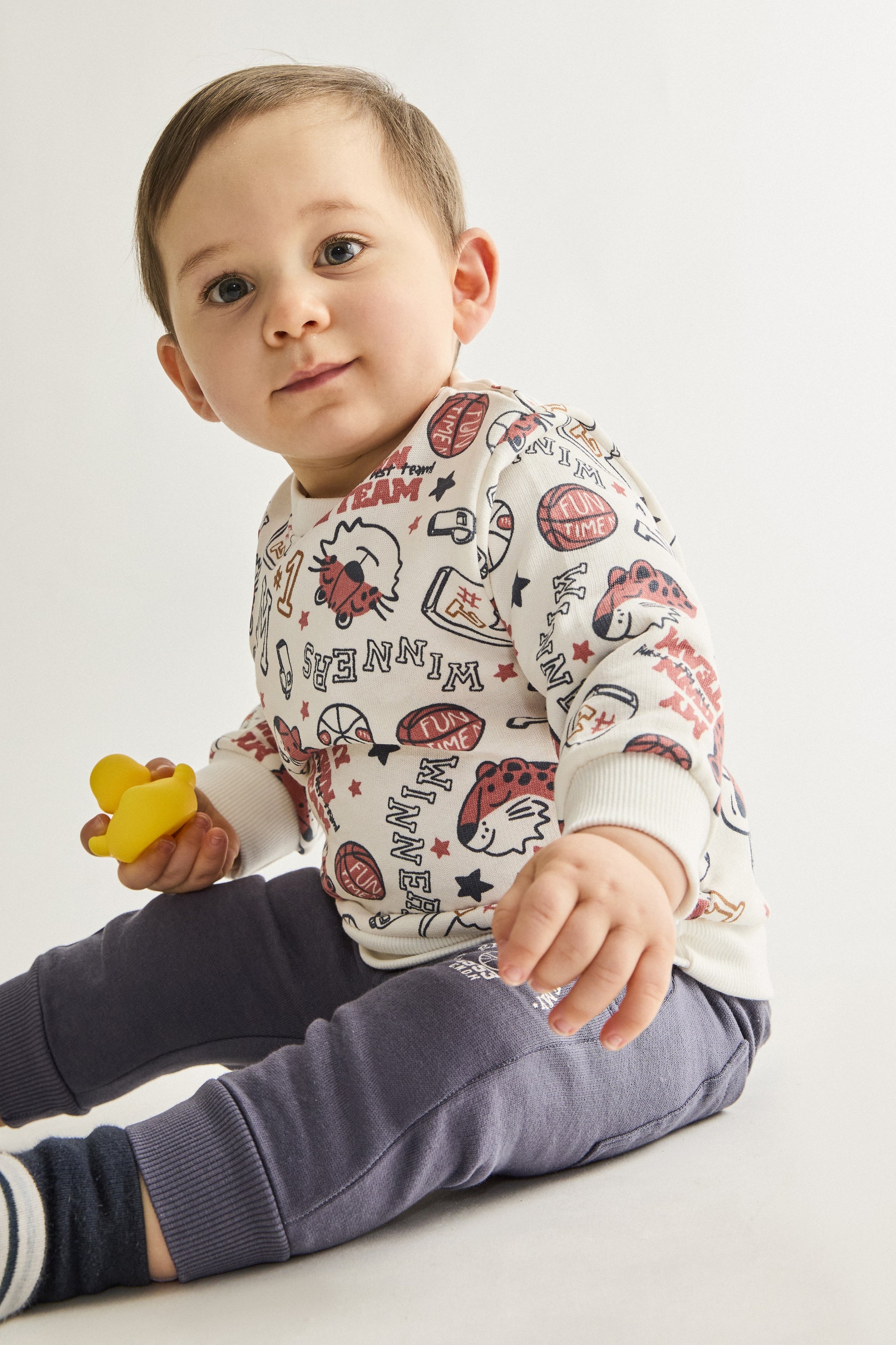 💚Para niñas de 12 meses a 4 años, Conjunto de pantalón gris bolsillos y sudadera de estampada que le da un toque vintage💚