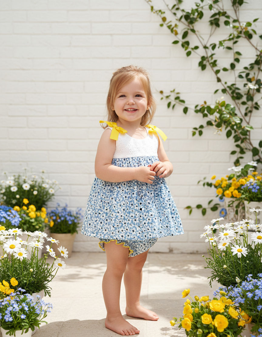 Conjunto de camiseta Blanca y Braguita con lazos tull.