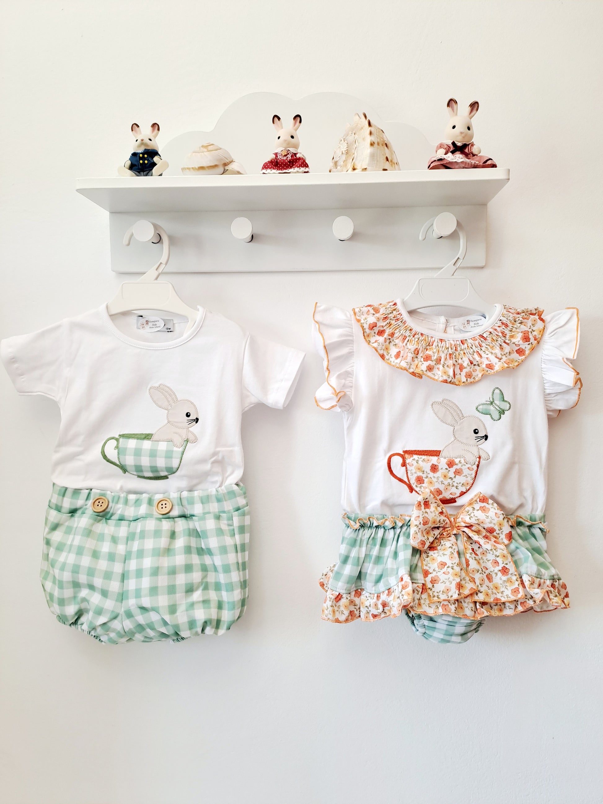 Conjunto camiseta algodón y braguita con volante y lacito en el centro 💚