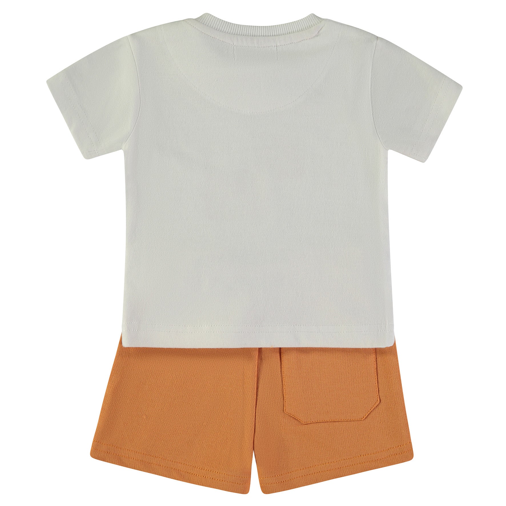 Conjunto "Ready for a Walk" – Estilo y Diversión bajo el Sol Prepara a tus pequeños para la aventura con este conjunto de dos piezas coordinado. Incluye una camiseta de algodón premium con un simpático diseño de perrito y bermudas en tono teja a juego. Cómodo, transpirable y perfecto para un día de juegos en la playa o el parque. ¡Listos para pasear con estilo!