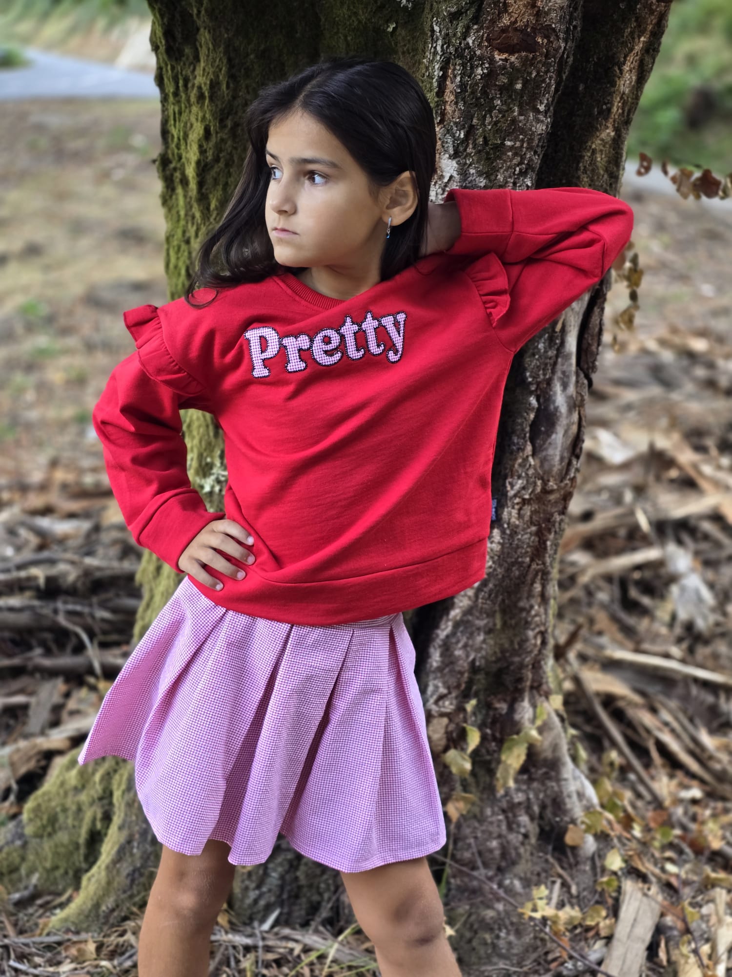 Conjunto sudadera y Falda con pelito de la colección gato rojo