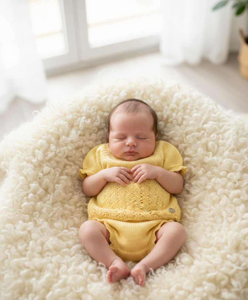 Color: Un tono amarillo suave (tipo vainilla o pastel), que transmite dulzura y es perfecto tanto para niños como para niñas.