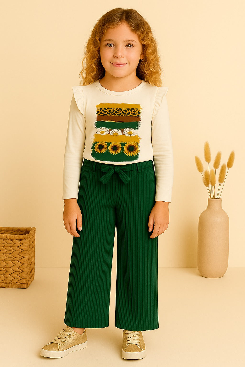 Conjunto de camiseta con volante y Pantalón ancho verde