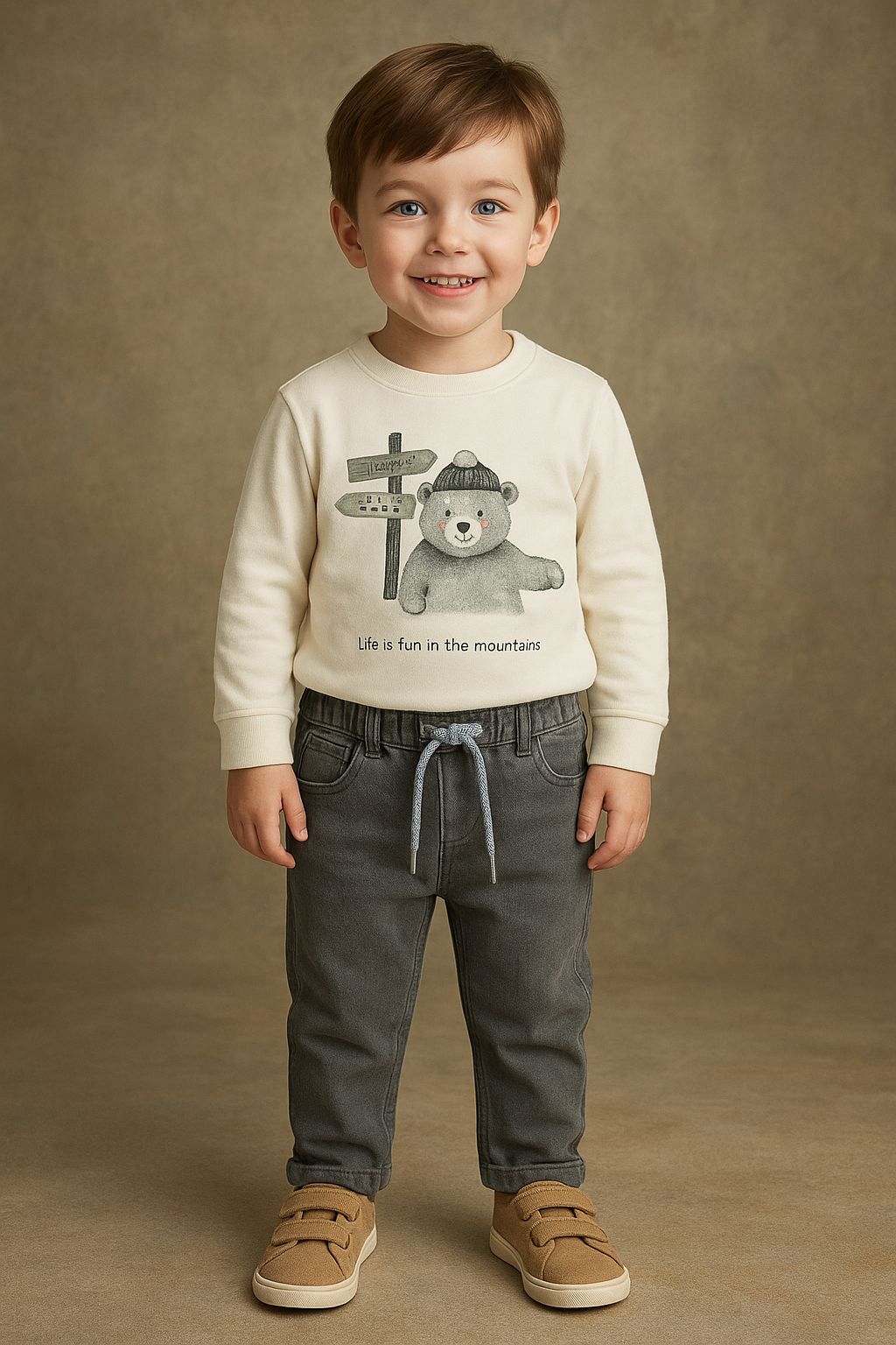 💚Para niñas de 12 meses a 4 años, Conjunto de pantalón gris y camiseta estampada que le da un toque vintage