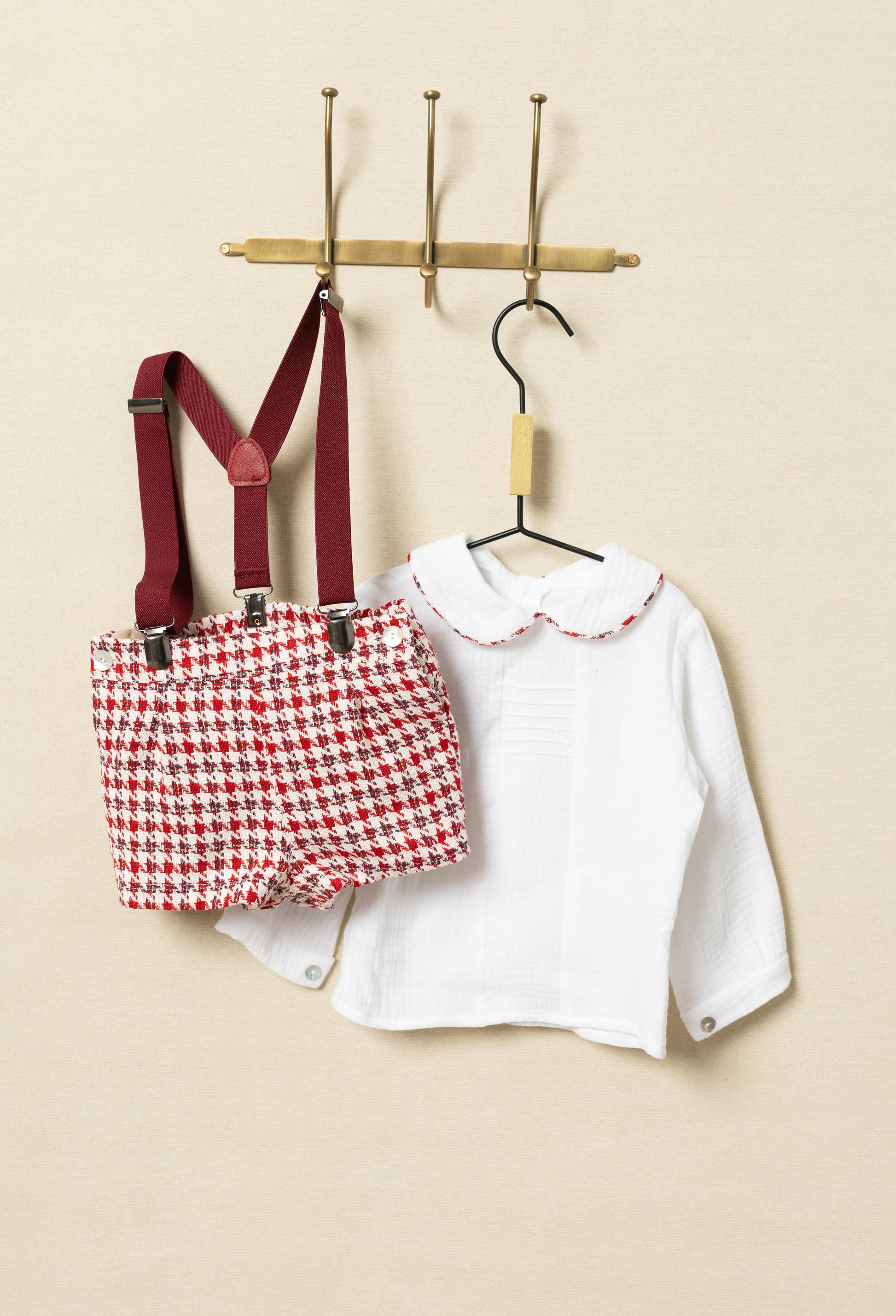 ¡Luce con estilo desde pequeñ@! 💫 El conjunto es pura ternura: camisa crema de cuello Mahu 🤍, ✨. La pantalón corto a juego completa un look cómodo, calentito y elegante 🧁👗