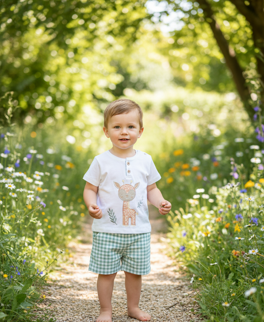 Conjunto de camiseta Blanca y pantalón verde vichy.
