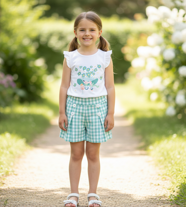 🎀 Con este conjunto nos vamos de fin de semana.... Maravilloso!! 🎀 camiseta estampada con lazo en la espalda y volante en las mangas.