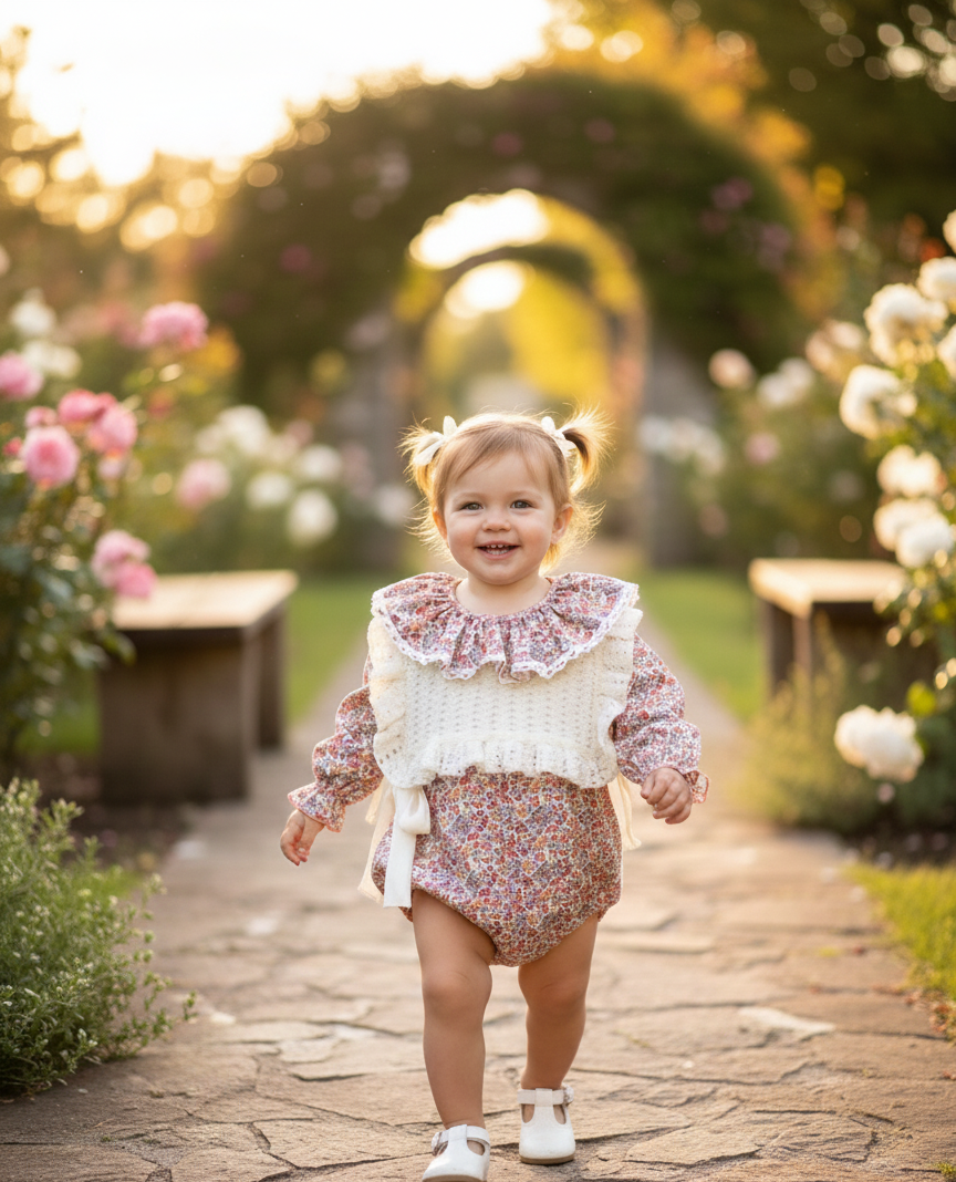 El Conjunto "Victoria" es la definición de dulzura y elegancia atemporal. Diseñado para las princesas más pequeñas, fusiona el confort con un estilo clásico que nunca pasa de moda. Es ideal para sesiones de fotos, bautizos o cualquier evento especial.