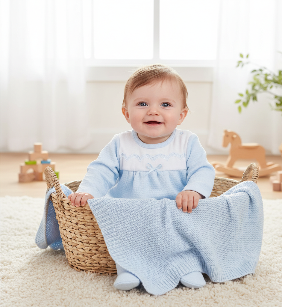 En tejido 100% algodón de alta calidad, muy suave y pensado para la delicada piel del bebé.