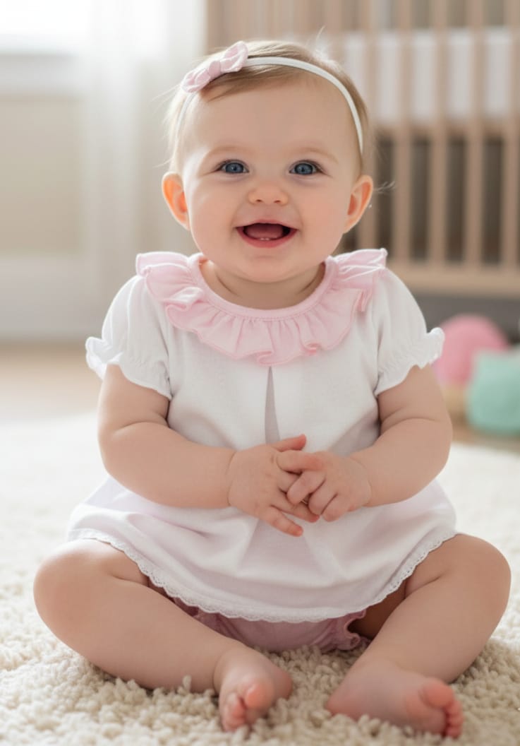 💙Conjunto pololo algodón Blusa y braguita color rosa y celeste con volante en el cuello y en el filo de la blusa.🩵