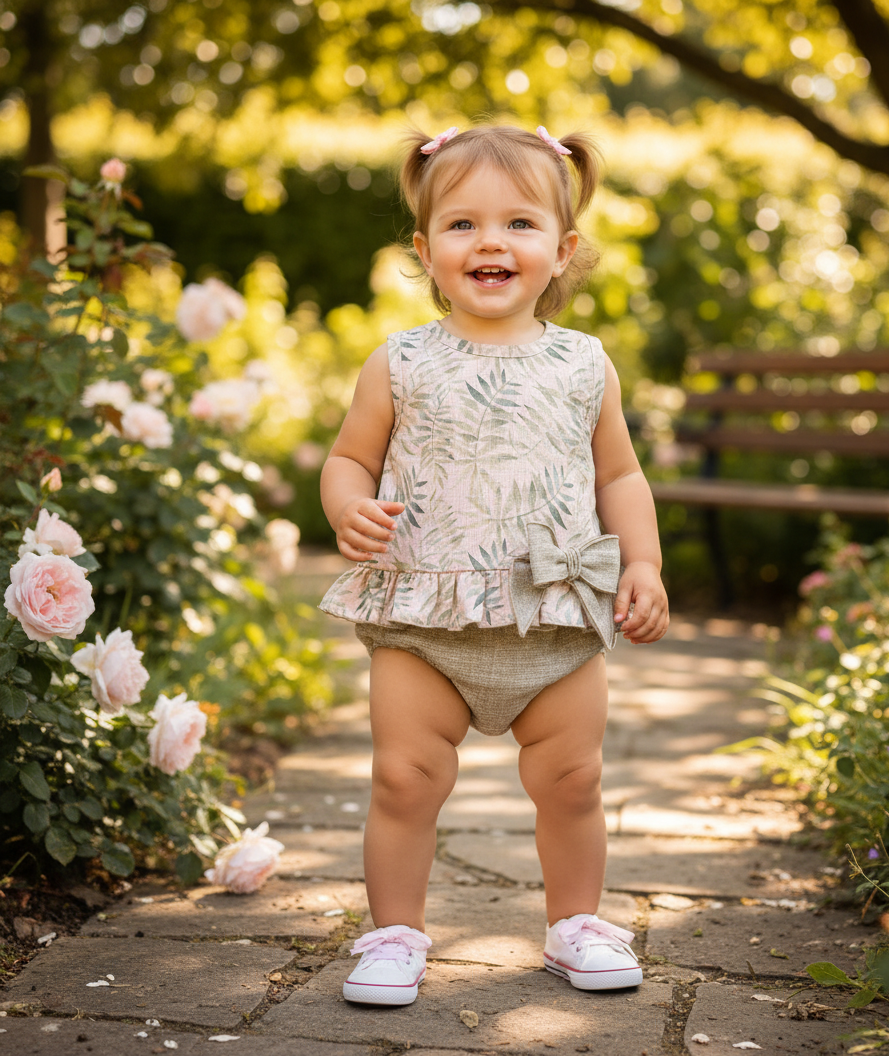 💚Conjunto peto algodón con camiseta con volantes y lazo y braguita filo fruncid .💚