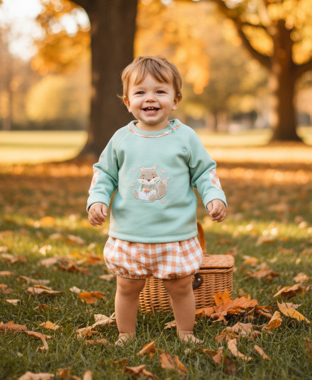 Este encantador conjunto para bebé incluye una sudadera y pololo a juego con las coderas, ideal para mantener a tu pequeño cómodo y con estilo. La sudadera, en tono verde suave, cuenta con un bordado de zorrito, y coderas de cuadro vichy naranja con el mismo diseño a juego. Su tejido suave y cálido es perfecto para los días frescos. El pantalón, del mismo color, ofrece un ajuste cómodo y libertad de movimiento. Un look adorable y práctico para el día a día.