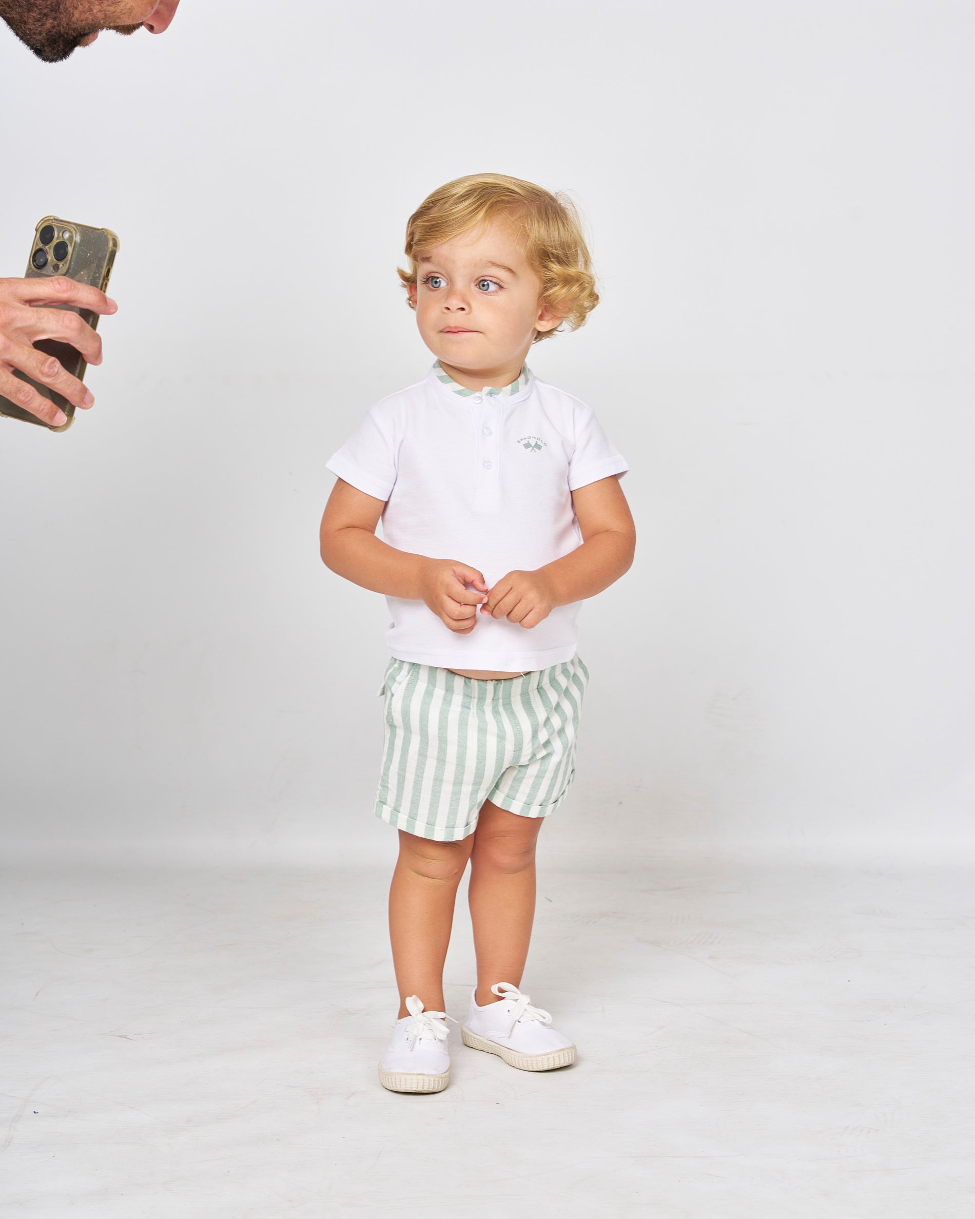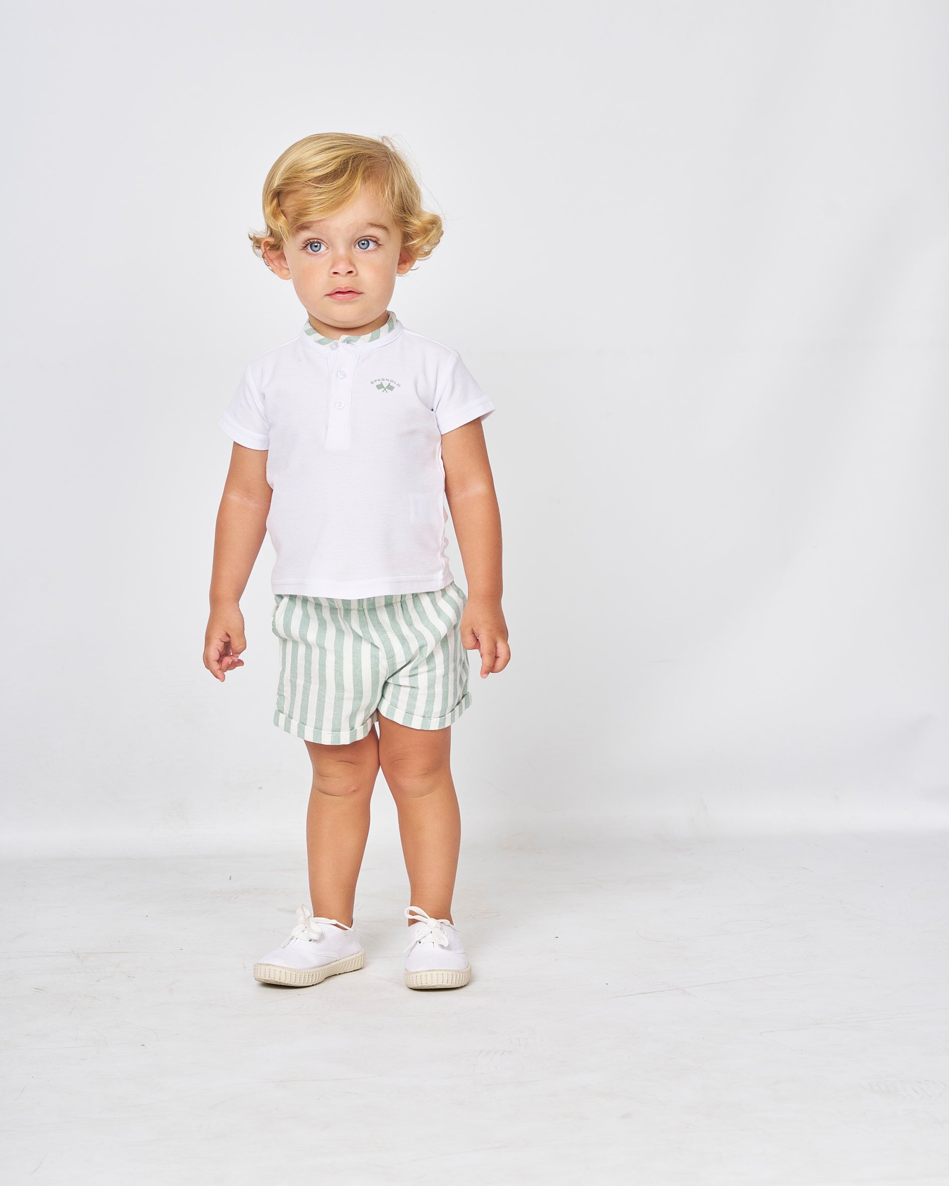 Conjunto polo blanco y pantalón rayas verde con bolsillos Spagonolo