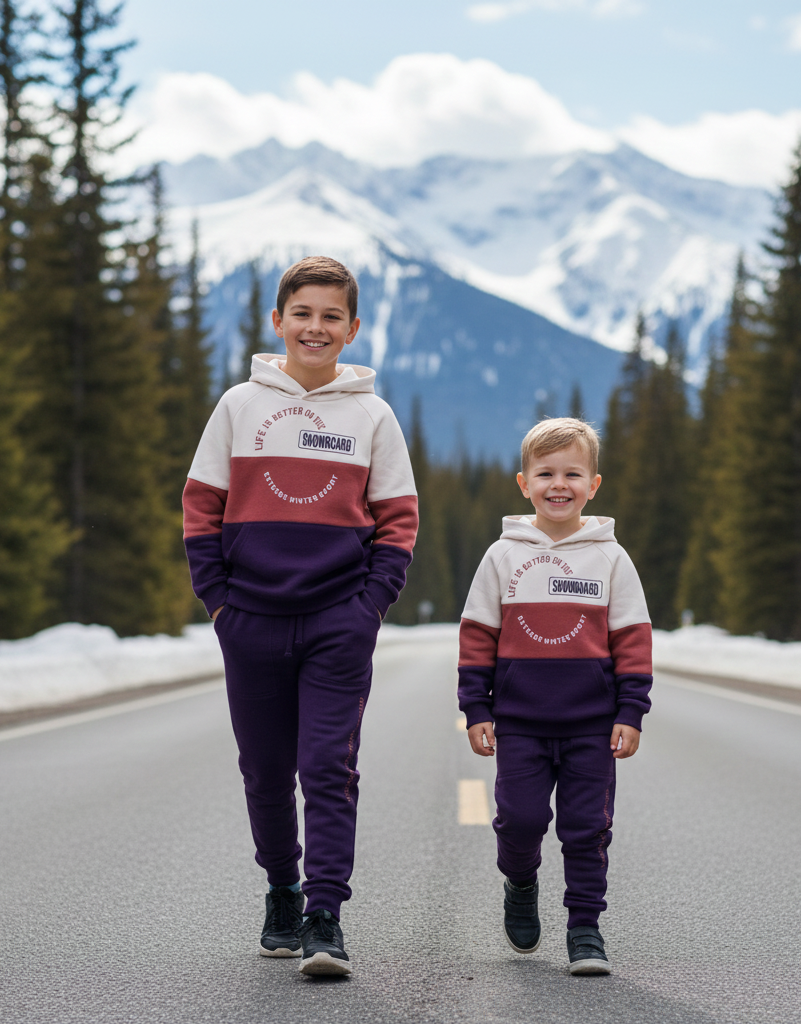 Conjunto chándal de sudadera con capucha tricolor con estampado, pantalón marino con bolsillo y cinta en la cintura de ajuste