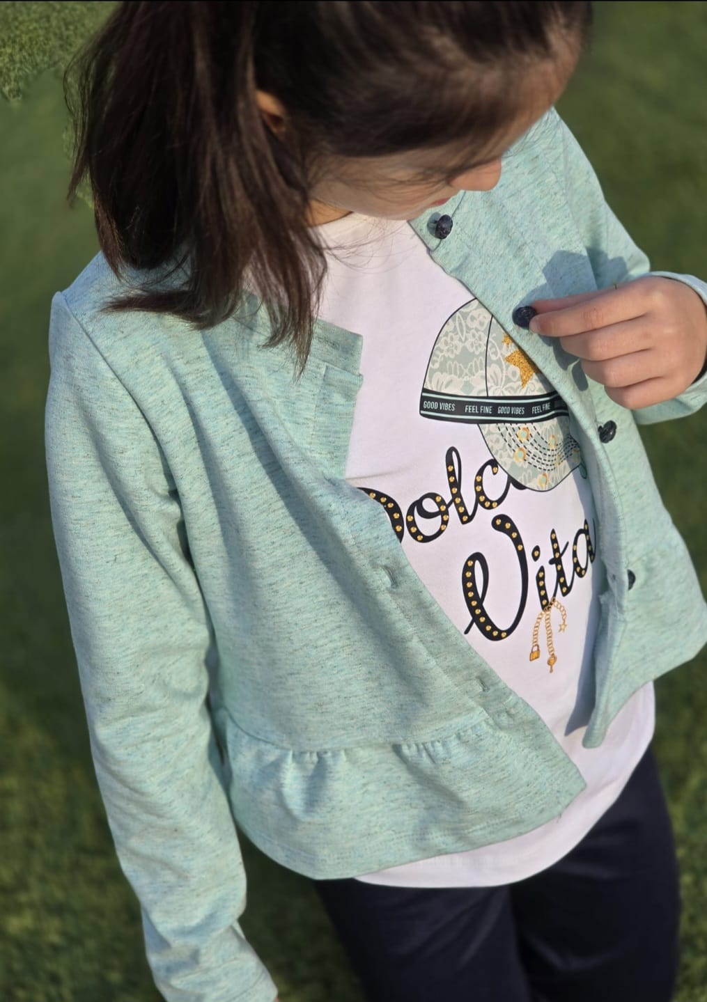 🎀 Chaqueta algodón 90/10 con elasticidad con brillo verde agua