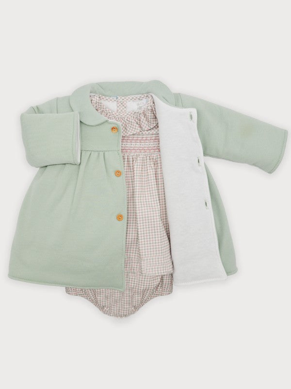 Conjunto de 3 piezas Chaquetón, vestido y braguita