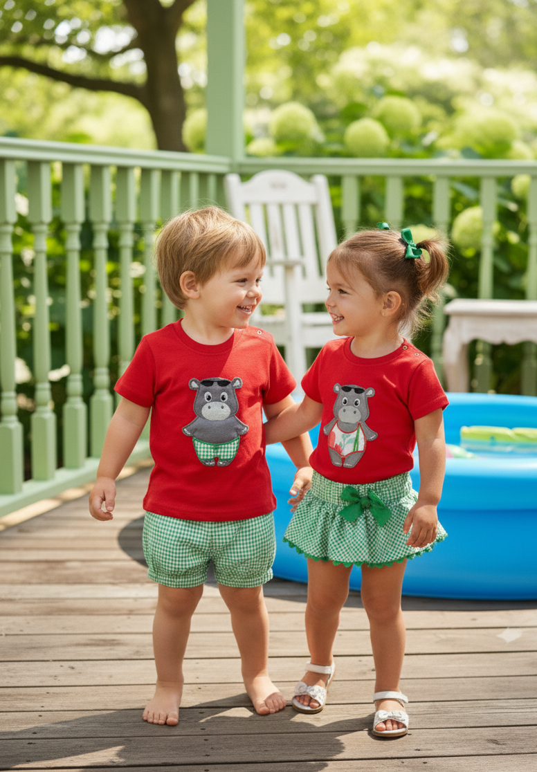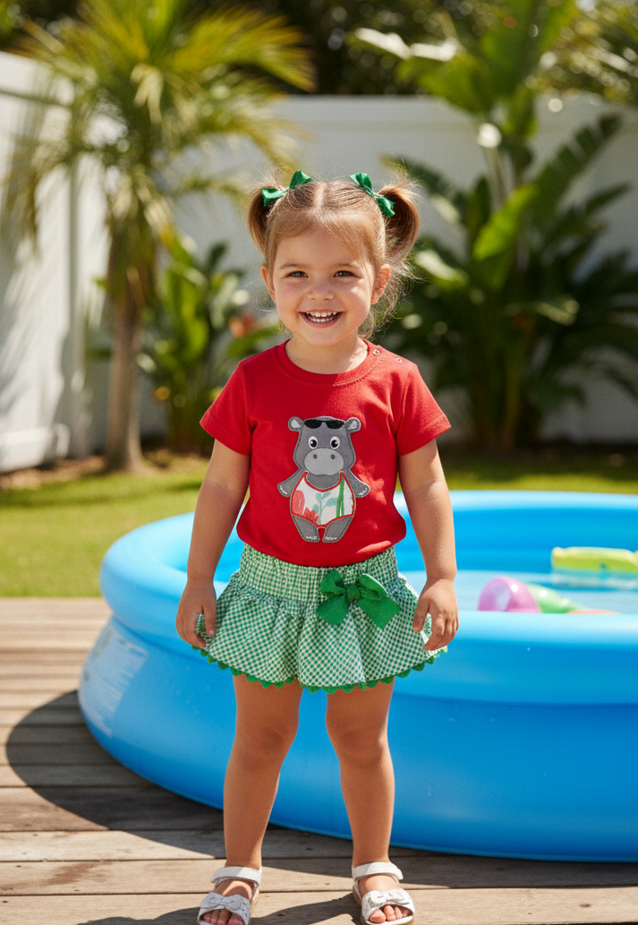 💚Conjunto Camiseta con botones de anclas, volantes vichy y braguita de vichy azul .💚