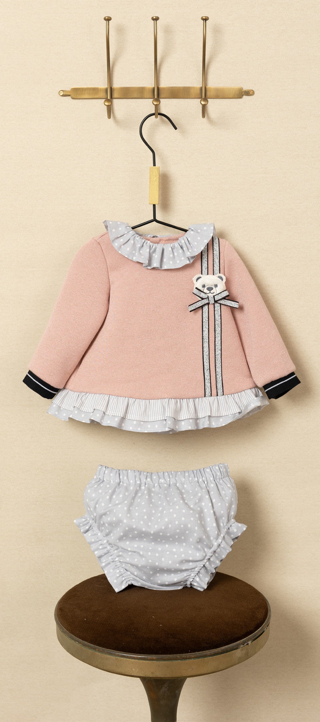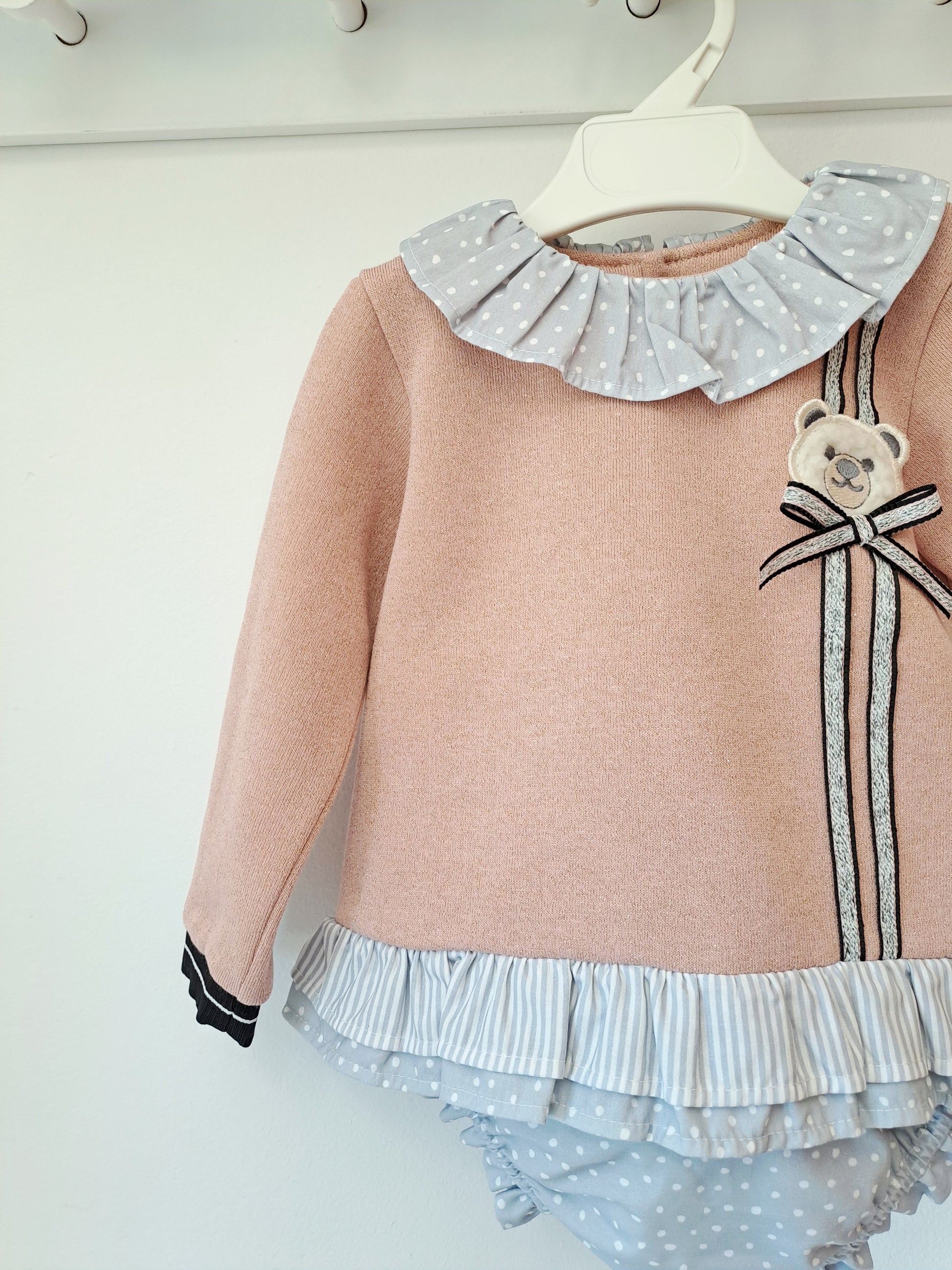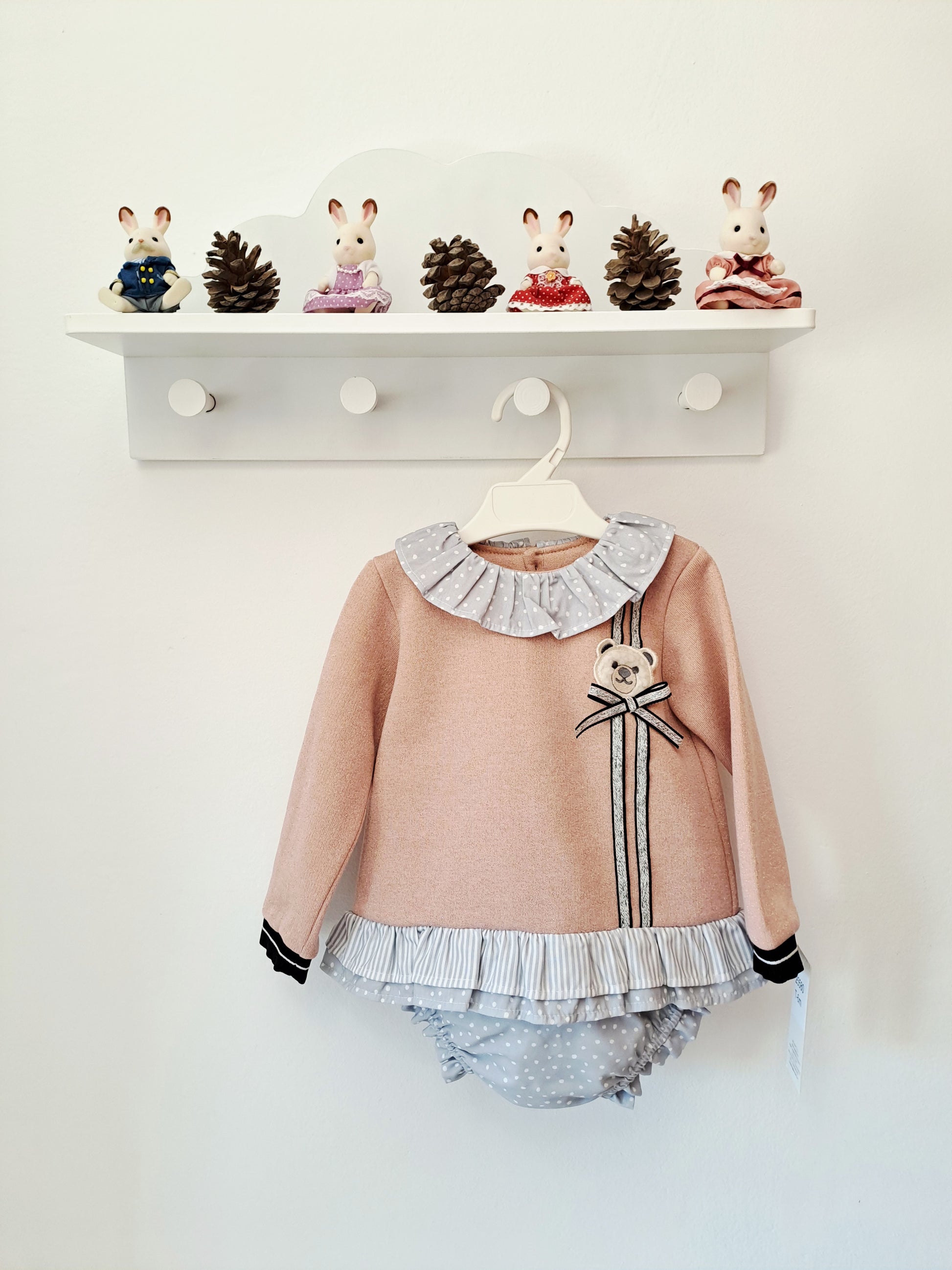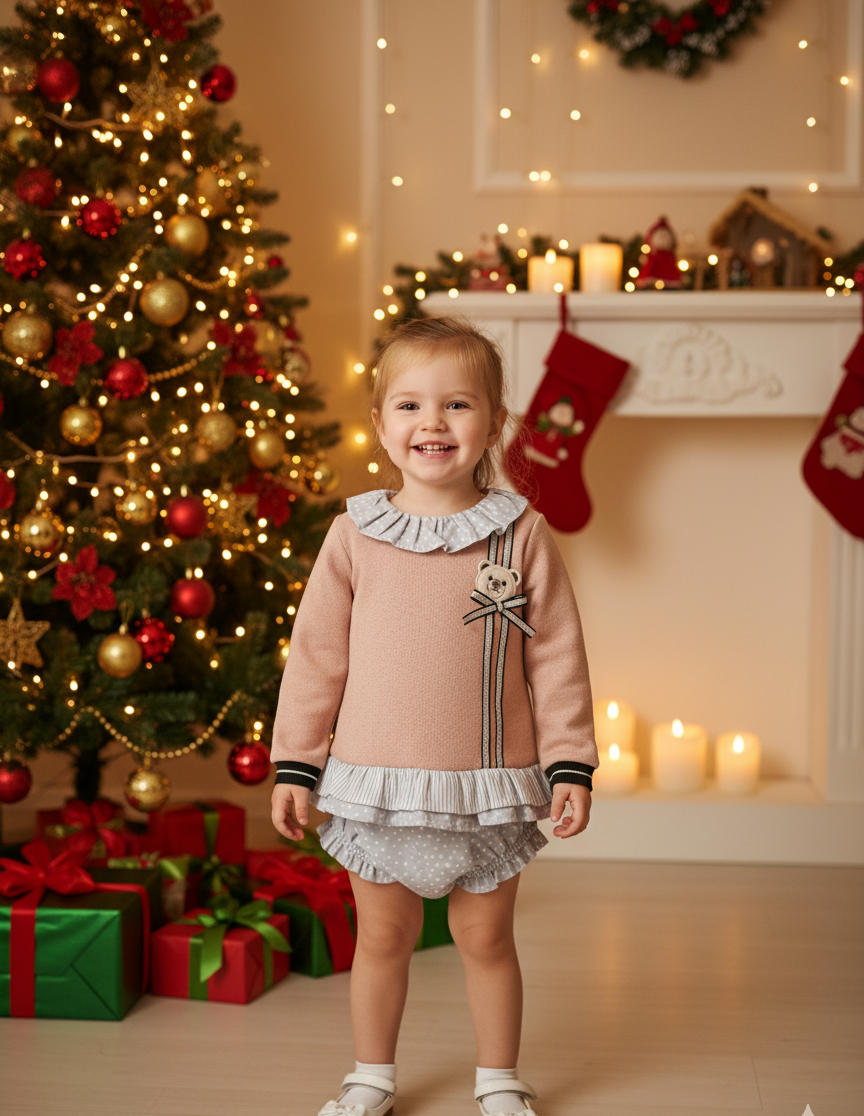 ¡Luce con estilo desde pequeñ@! 💫 El conjunto El louvre es pura ternura: sudadera de cuadros con cuello bebé 🤍, y delicados volante blanco ✨. La braguita a juego completa un look cómodo, calentito y elegante 🧁👗