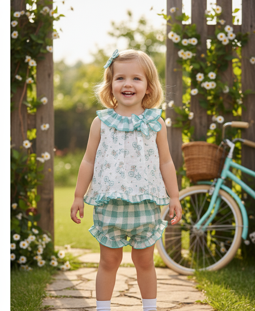 💚Conjunto Camiseta con lazo y braguita de azul .💚