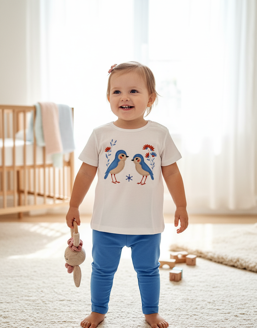 Conjunto de leggins y camiseta con pajaritos bordados.