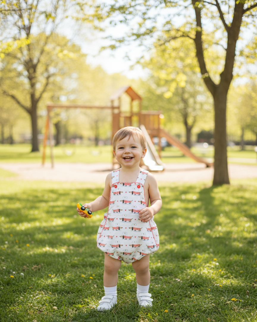 💐 Pelele blanco con perritos rojo, , hermanos conjuntados, con botón con apertura superior.💐