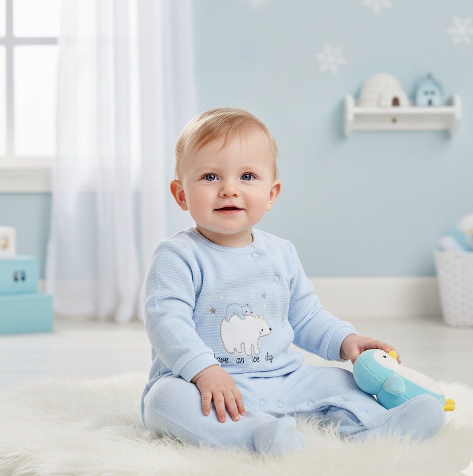 Pelele Celeste y dibujo de Mama osito con Bebe Osito
