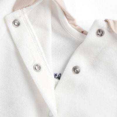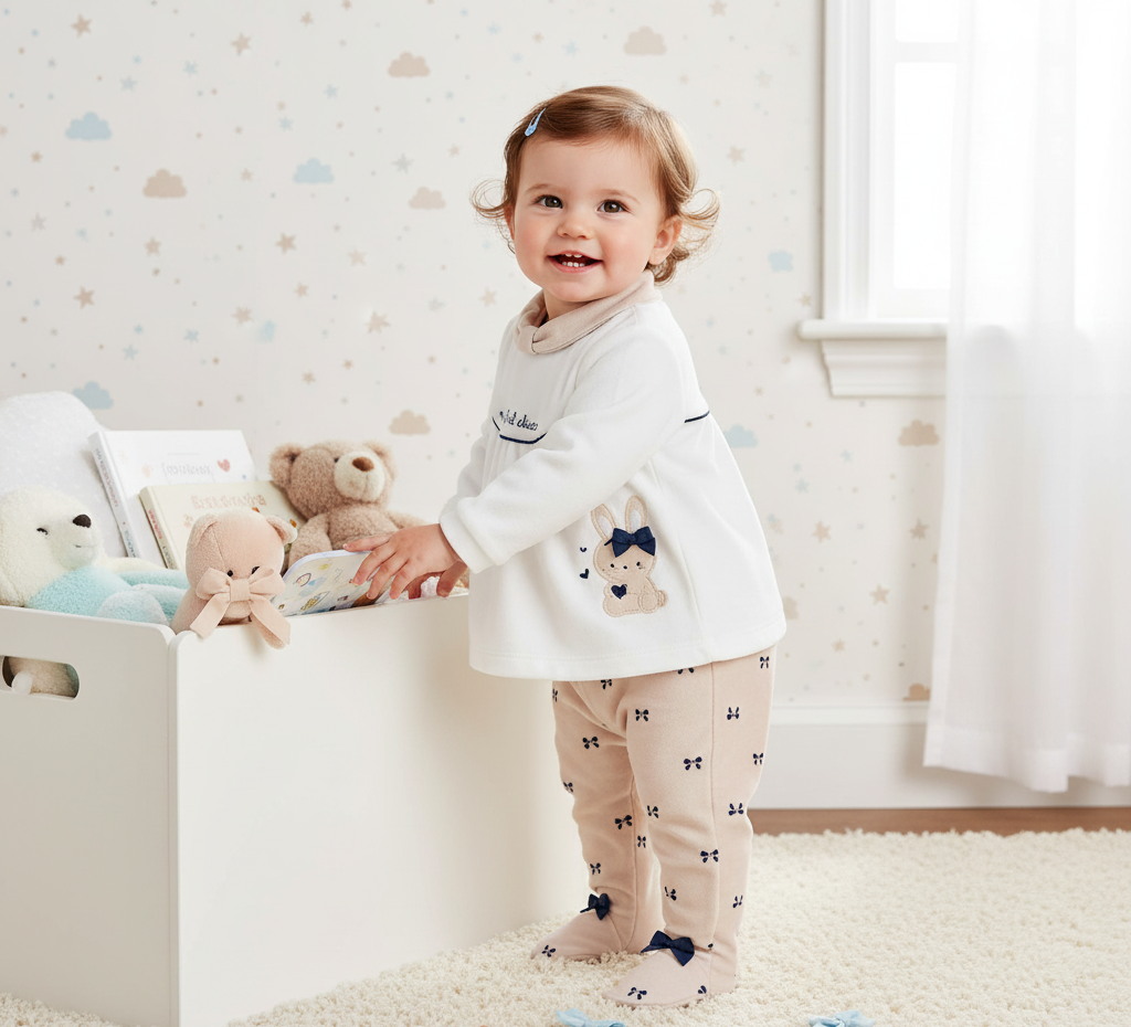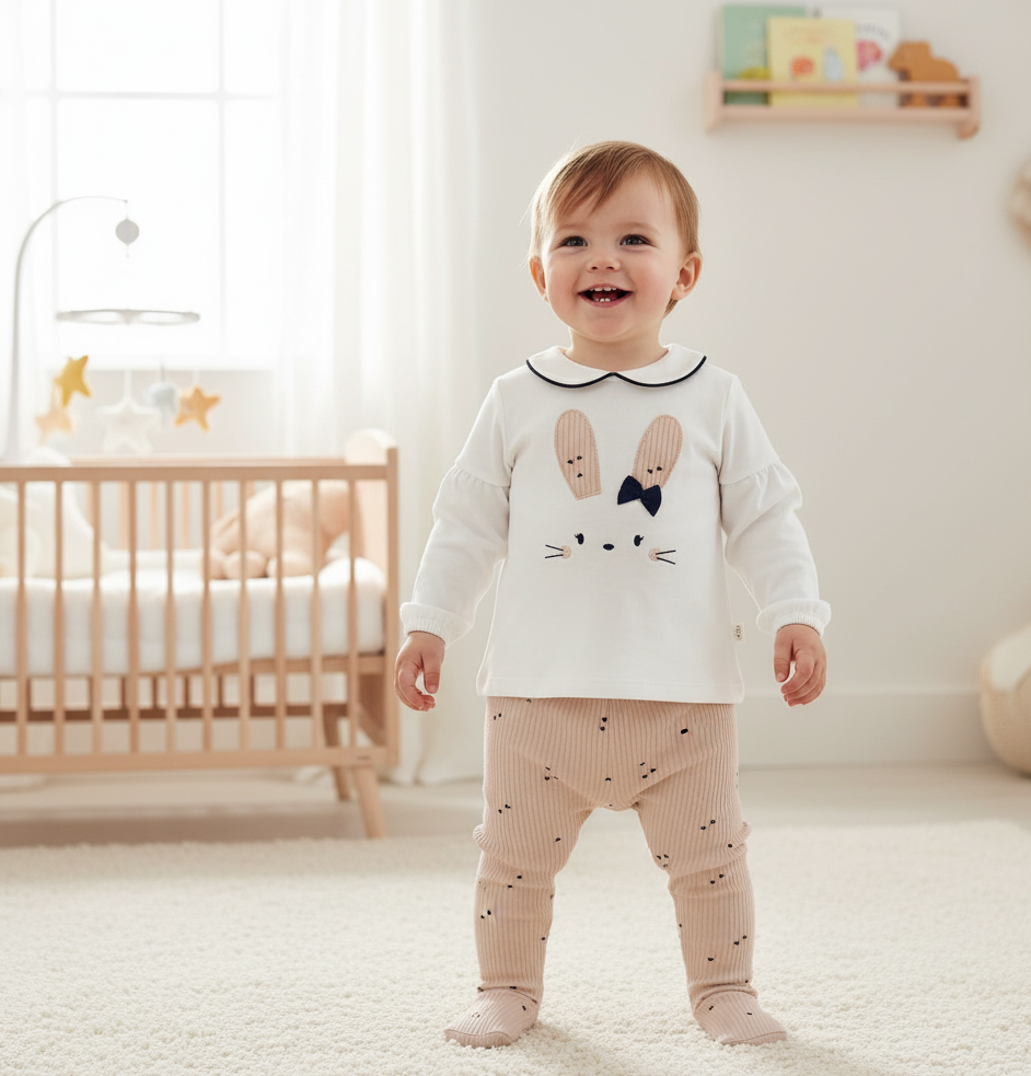 Este encantador conjunto para bebé combina ternura y comodidad, ideal para los primeros meses. Consta de dos piezas: