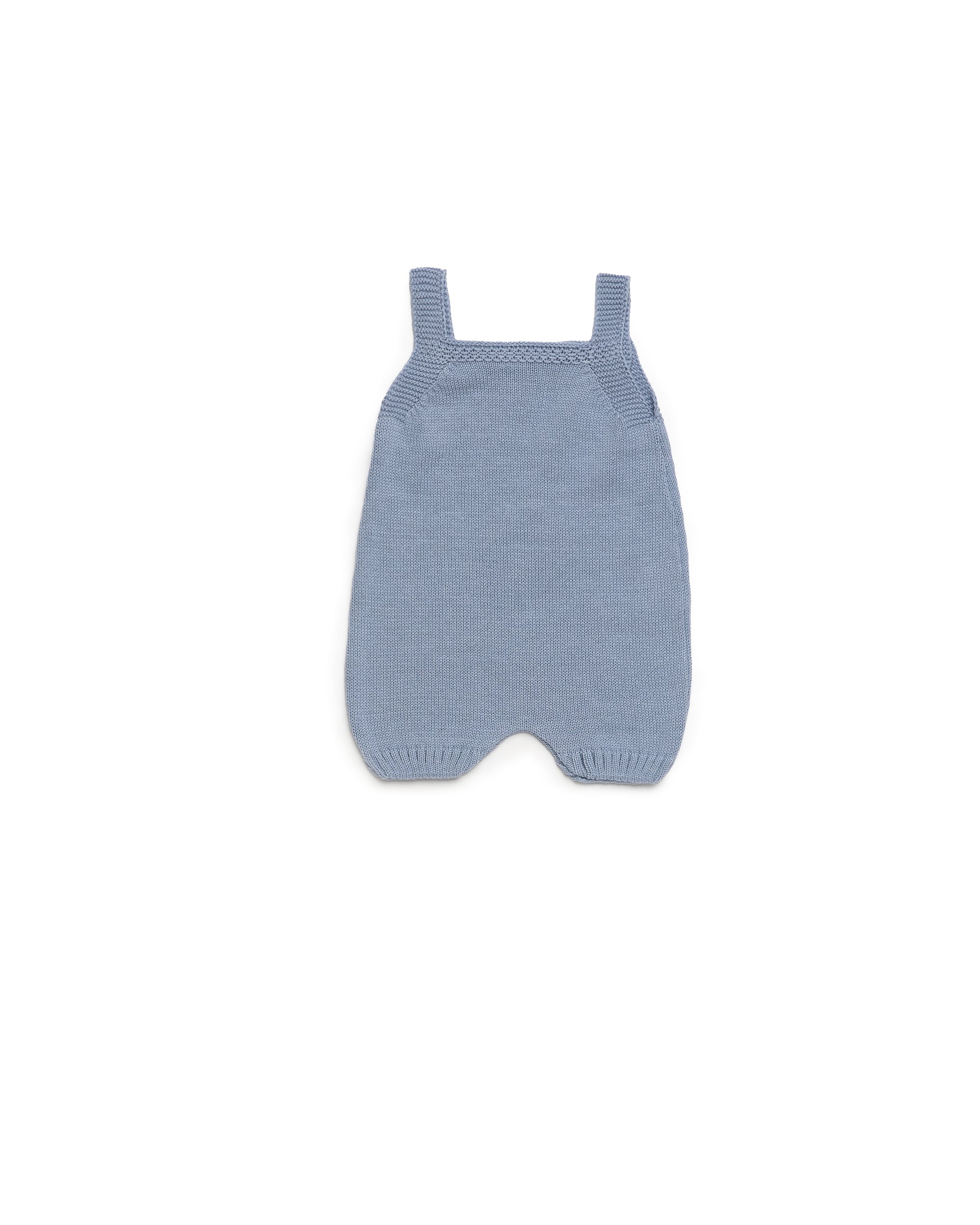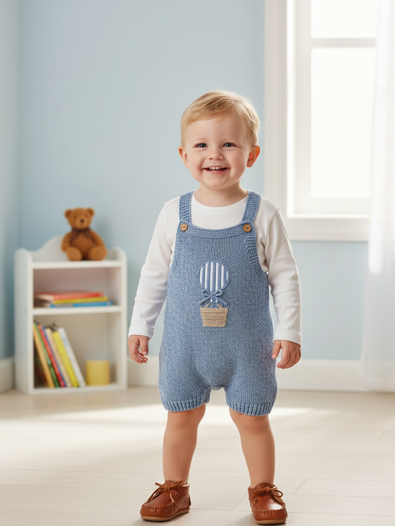 Haz que cada momento sea especial con este encantador peto de punto artesanal en un suave tono azul melange. Diseñado pensando en la comodidad y el estilo de los más pequeños, este conjunto destaca por su delicado bordado central de un globo aerostático, aportando un toque dulce y soñador.