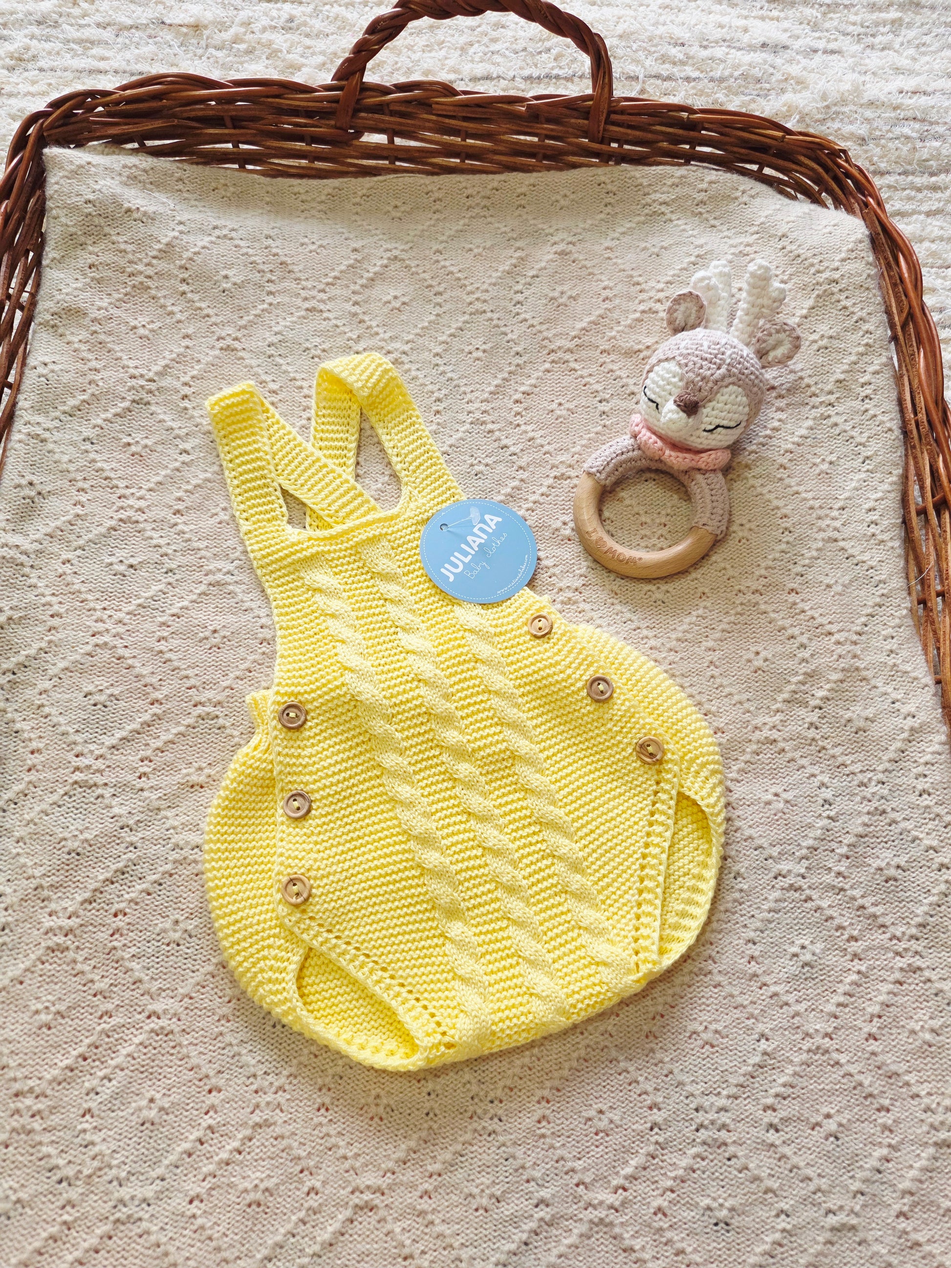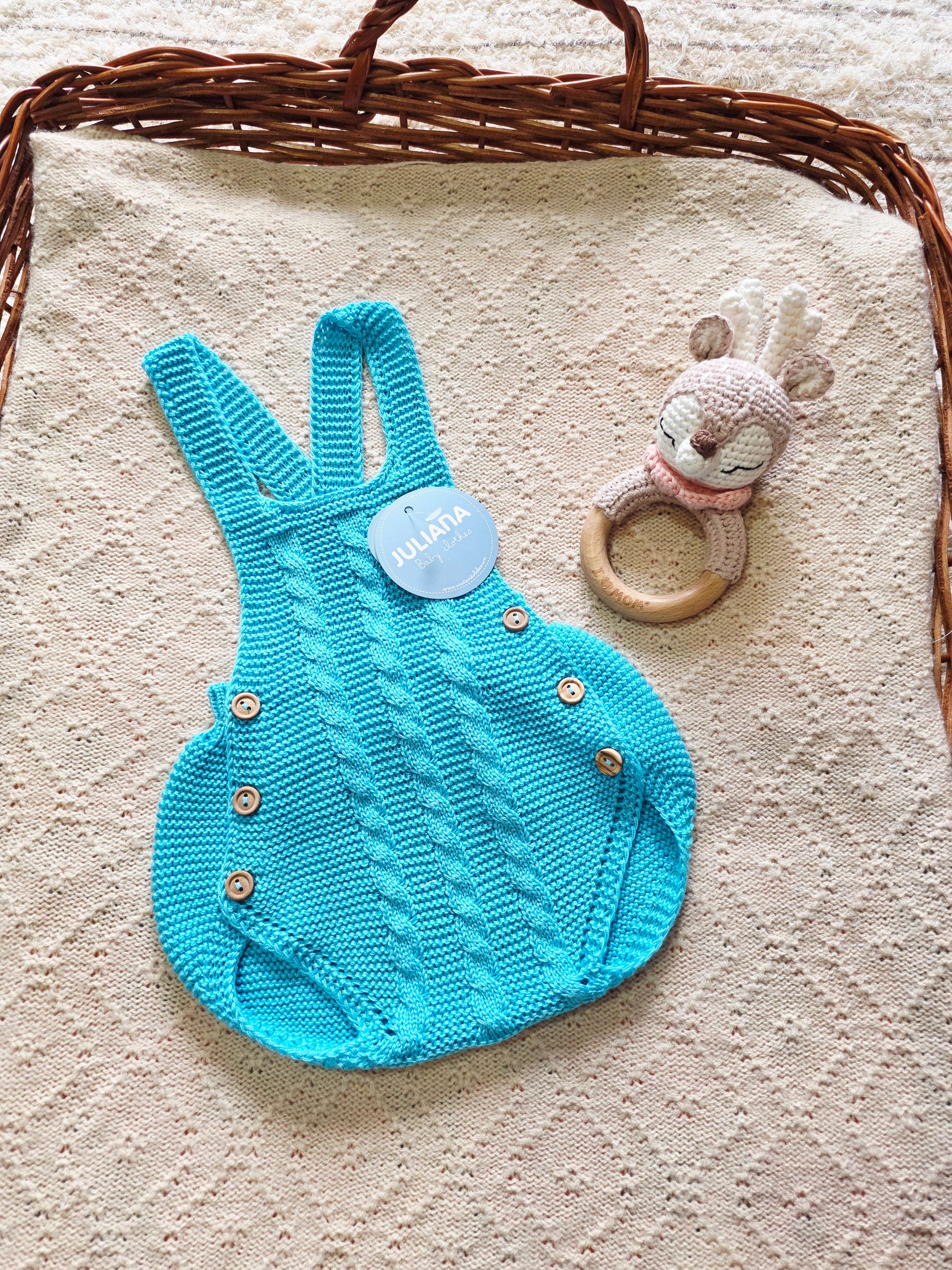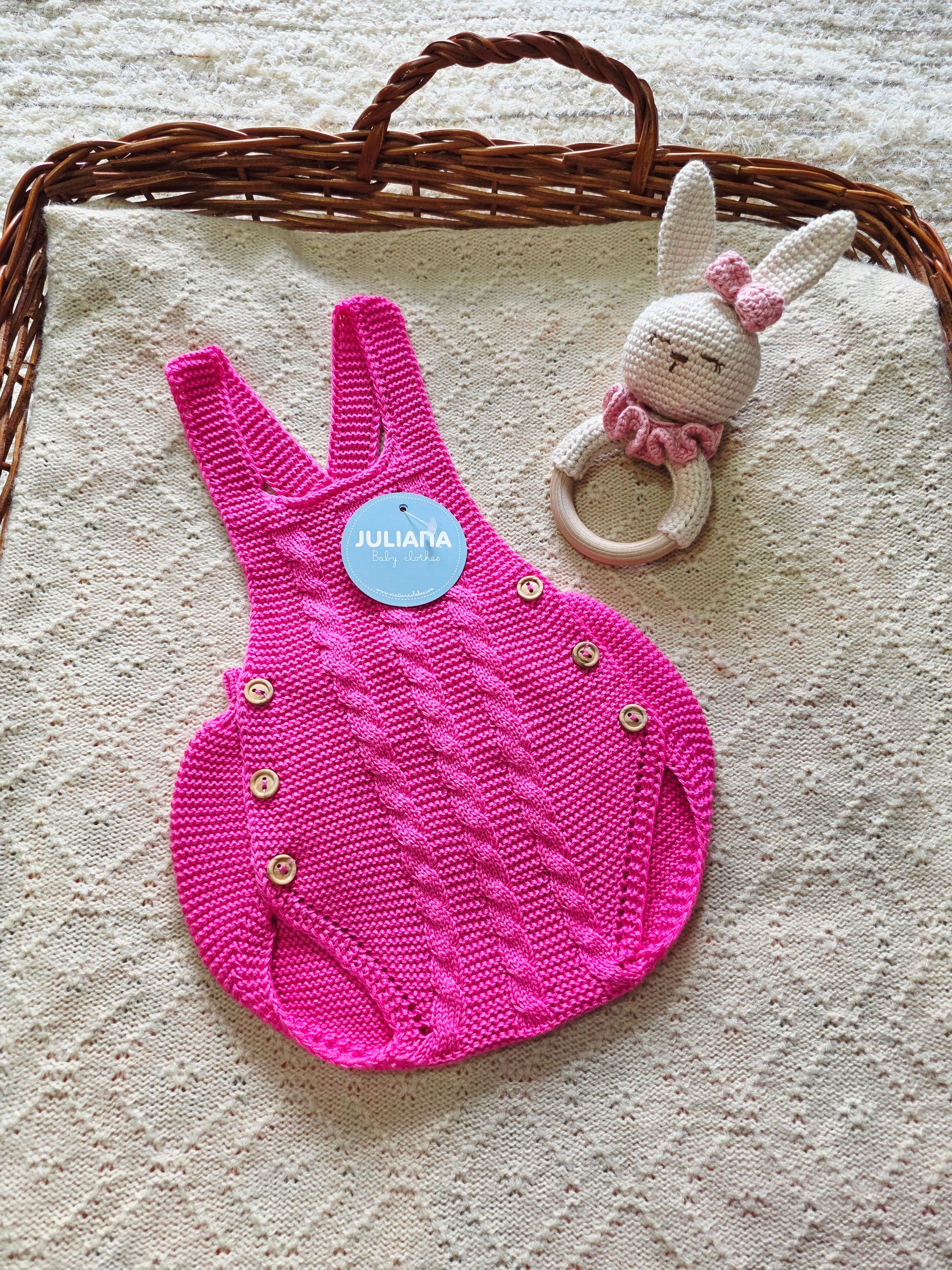 Este es un peto de punto para bebé en un vibrante y alegres colores . Destaca por su diseño atemporal y la calidad de sus acabados, ideal para ocasiones especiales o para un look diario con un toque elegante.