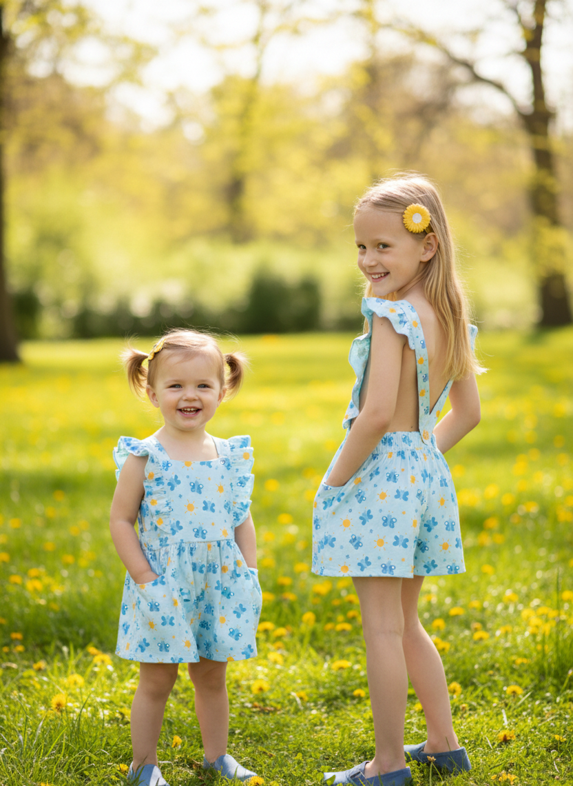 💚Peto Celeste con abejitas y volantes en los hombros .💚