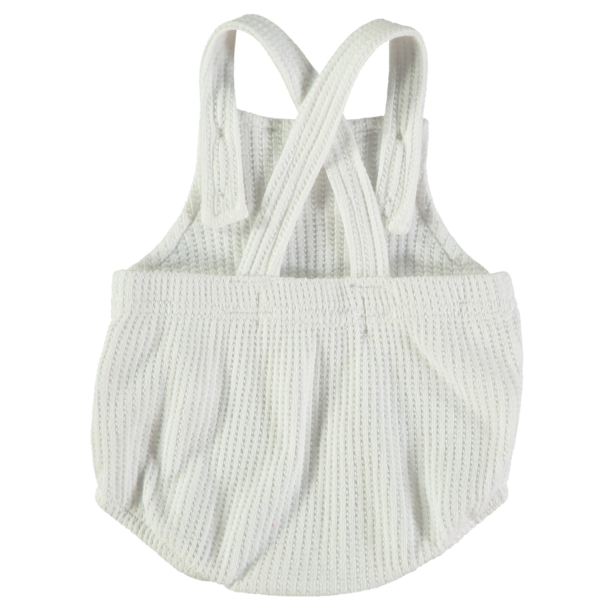 Este peto es una pieza de estilo clásico y artesanal, ideal para ocasiones especiales o sesiones fotográficas infantiles. Su diseño destaca por una estética "atemporal" que combina la sencillez con detalles muy cuidados.