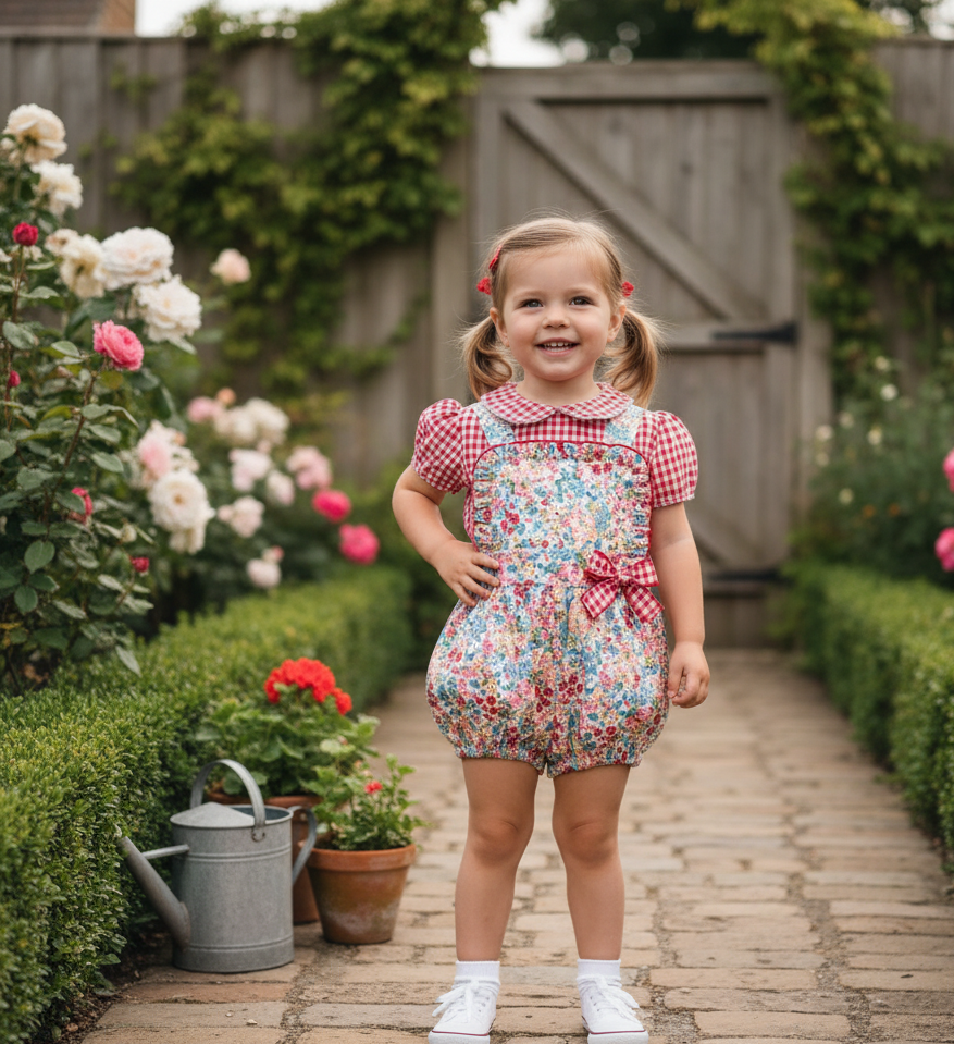 🐰 Ranita de flores y lazo de cuadro vichy rojo de Valentina