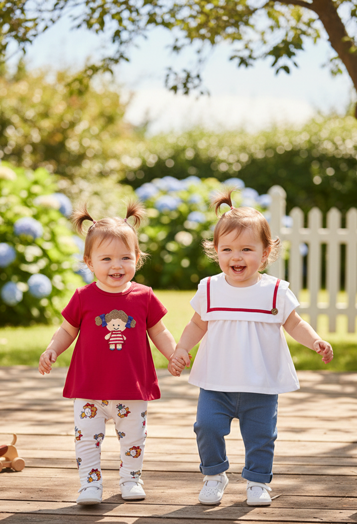 ¡Doble estilo y máxima comodidad para tu pequeña! Este encantador set de dos conjuntos coordinados está diseñado para ofrecer versatilidad y alegría en el día a día. Con una paleta de colores vibrante en rojo cereza, blanco puro y denim suave, estas piezas permiten múltiples combinaciones ("mix & match") para que siempre tengas un look fresco a mano.