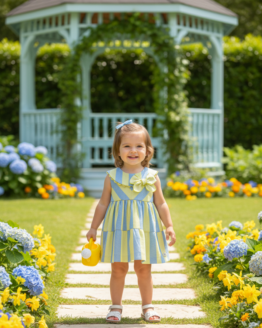 💛 Vestido de Rayas verde menta y celeste, con botón con apertura superior, sin braguita.