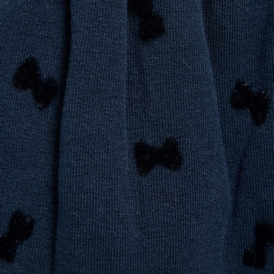 En conjunto, el vestido combina la sobriedad del azul marino con la dulzura del estampado, creando una prenda perfecta para ocasiones especiales o salidas familiares, manteniendo siempre un aire infantil y encantador.