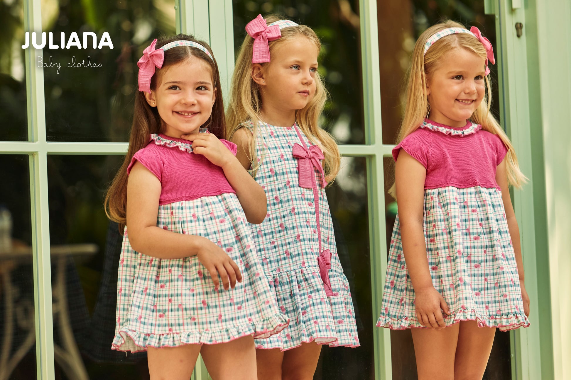 Vestido de Cuadros con Lazos Frontales Un diseño encantador que combina la elegancia del estampado de cuadros y fresas en tonos pasteles con un toque de dulzura. Este vestido destaca por sus dos grandes lazos centrales en relieve y un delicado volante en el bajo, ideal para ocasiones especiales o paseos primaverales.