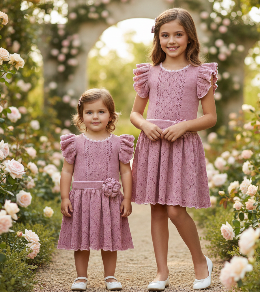 🎀Vestido de punto maquillaje con volantes en los hombros de punto y rematado con rosa claro en los filos