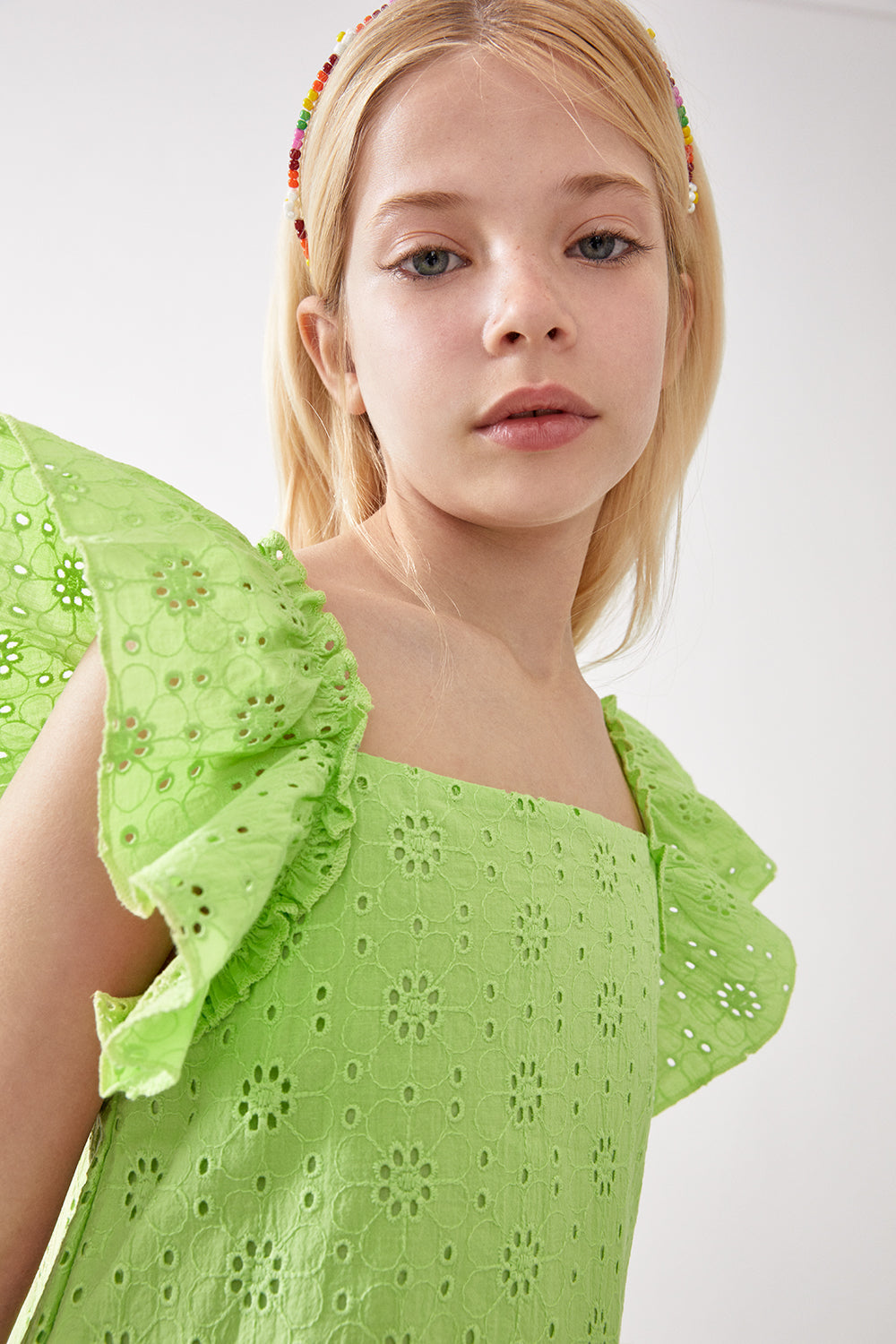 Vestido de tirantes de batistas perforada menta, para bebe y niña